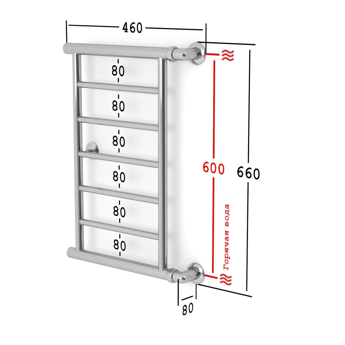 Полотенцесушитель Водяной Onix, модель Sirius Turn Right 600x800 Лесенка с боковым угловым подключением справа, Хром, полный комплект