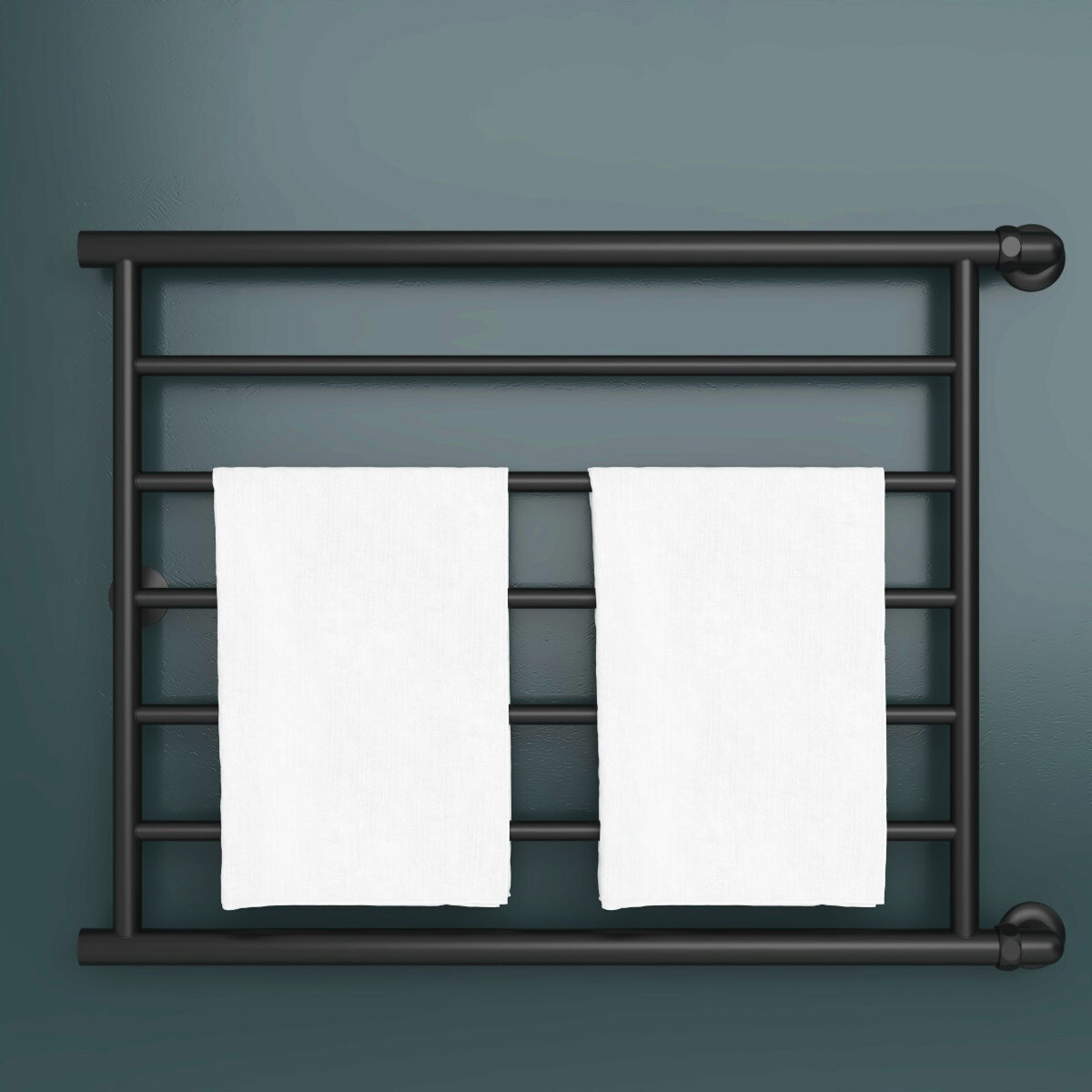 Полотенцесушитель Водяной Onix, модель Sirius Turn Black Right 600x600 Лесенка с боковым угловым подключением справа, Черный матовый, полный комплект
