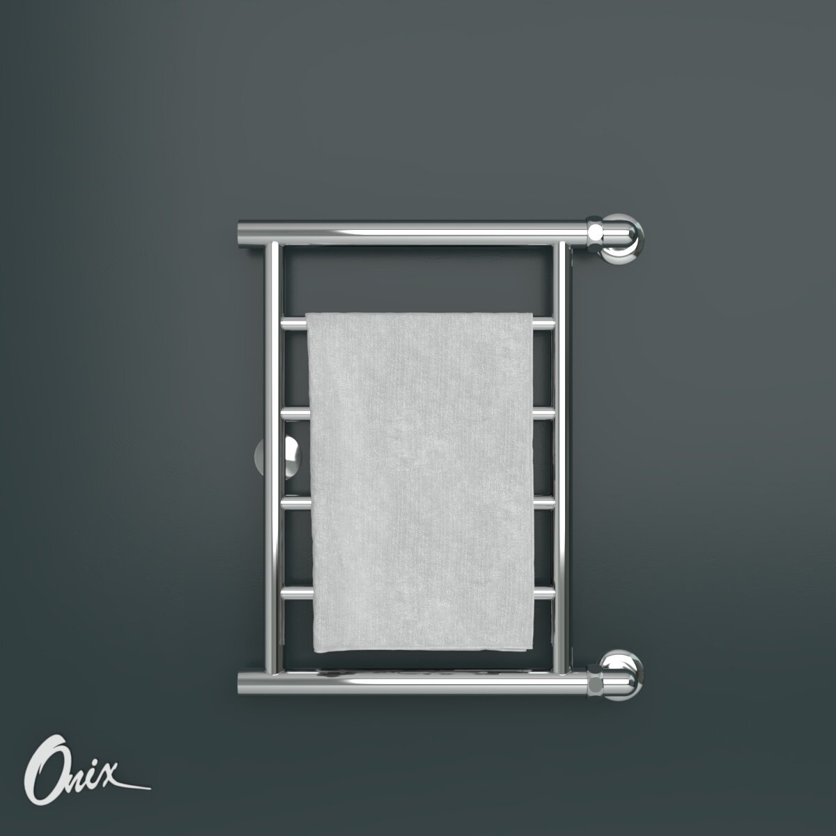 Полотенцесушитель Водяной Onix, модель Sirius Turn Right 600x400 Лесенка с боковым угловым подключением справа, Хром, полный комплект