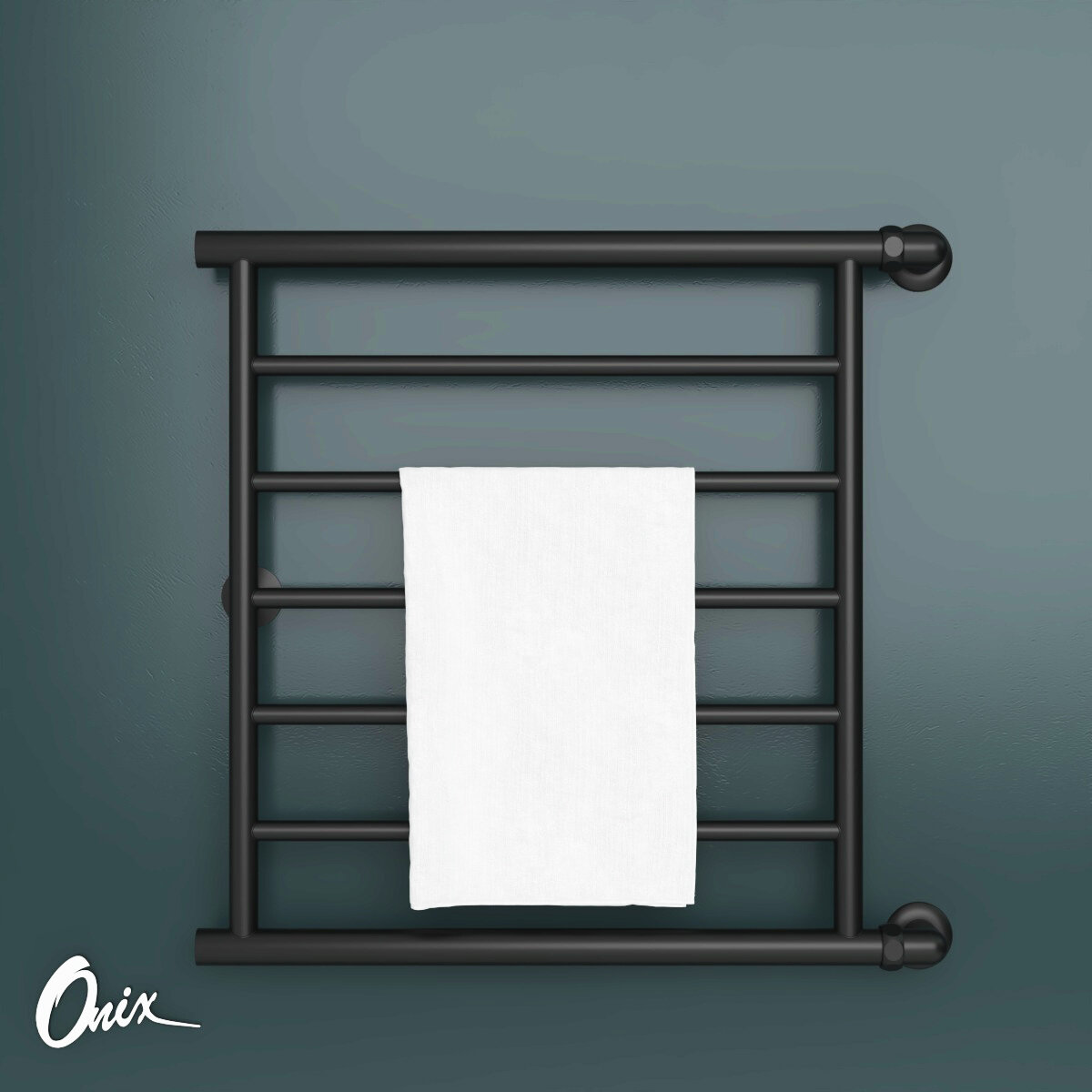 Полотенцесушитель Водяной Onix, модель Sirius Turn Black Left 600x600 Лесенка с боковым угловым подключением слева, Черный матовый, полный комплект