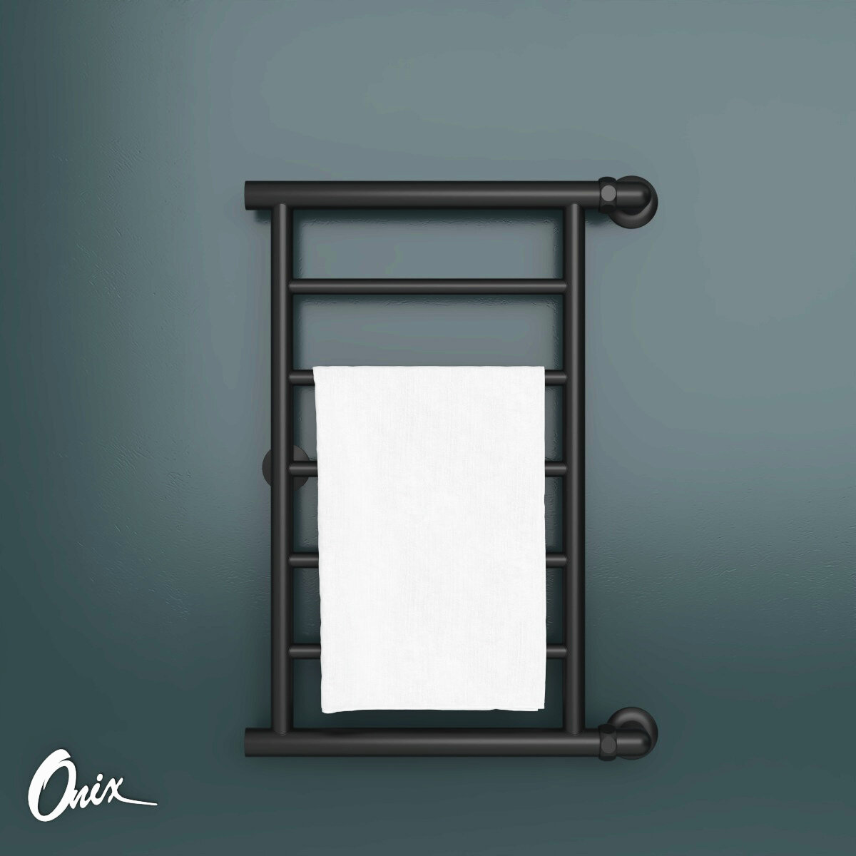 Полотенцесушитель Водяной Onix, модель Sirius Turn Black Right 500x700 Лесенка с боковым угловым подключением справа, Черный матовый, полный комплект