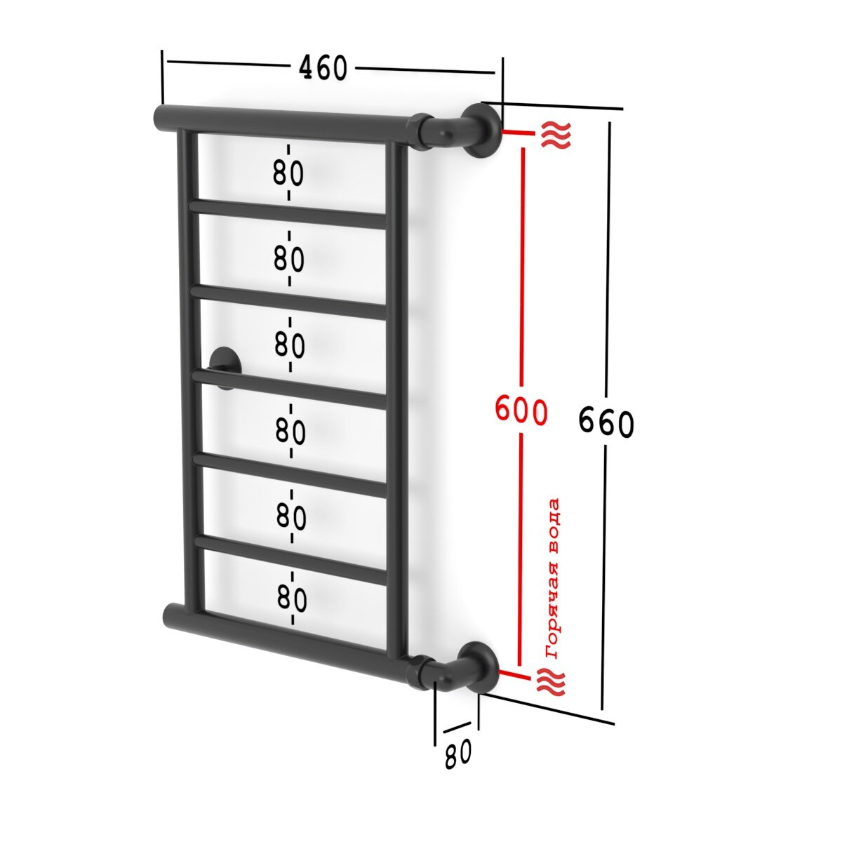 Полотенцесушитель Водяной Onix, модель Sirius Turn Black Left 600x800 Лесенка с боковым угловым подключением слева, Черный матовый, полный комплект