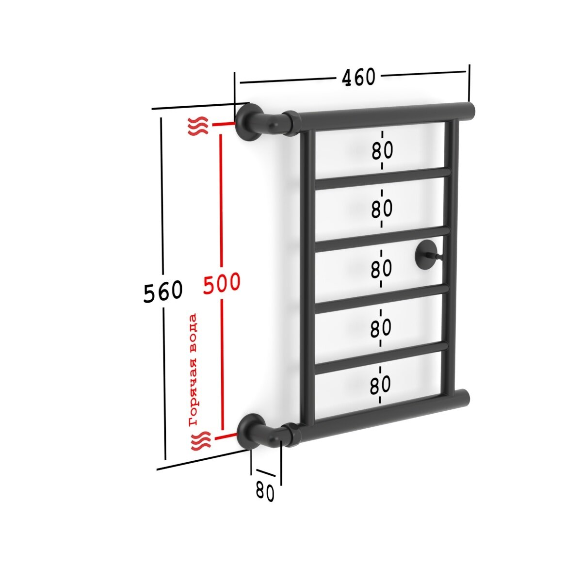 Полотенцесушитель Водяной Onix, модель Sirius Turn Black Left 500x800 Лесенка с боковым угловым подключением слева, Черный матовый, полный комплект