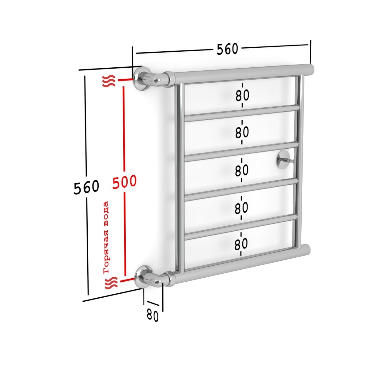 Полотенцесушитель Водяной Onix, модель Sirius Turn Right 500x600 Лесенка с боковым угловым подключением справа, Хром, полный комплект