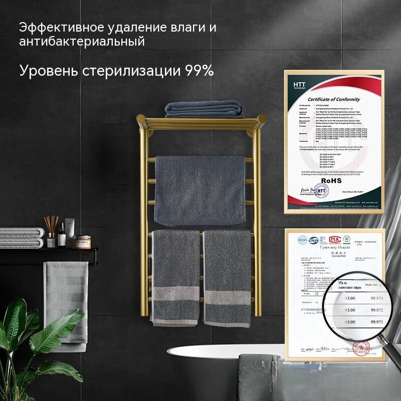 Полотенцесушитель электрический с терморегулятором 600х450х120 форма Лесенка, 6-перекладин, Левый ТЭН, скрытое подключение, Золотой