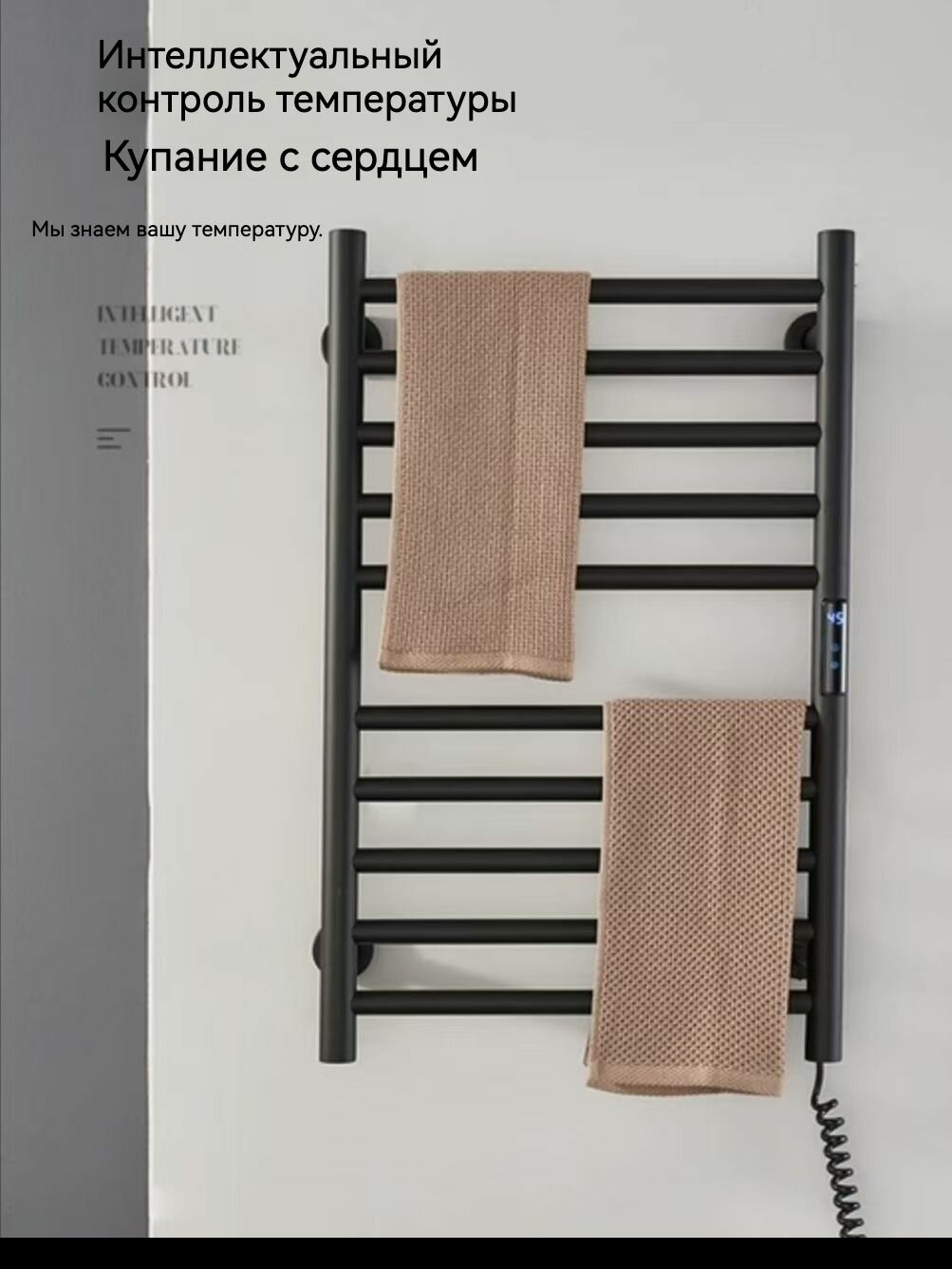 Полотенцесушитель электрический с терморегулятором 600х450х120 форма Лесенка, 6-перекладин, Правый ТЭН, скрытое подключение, черное