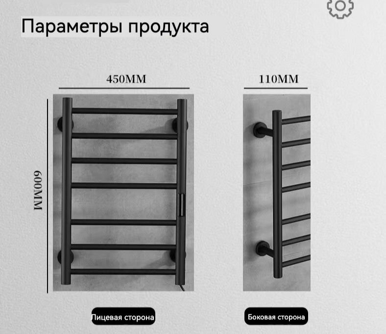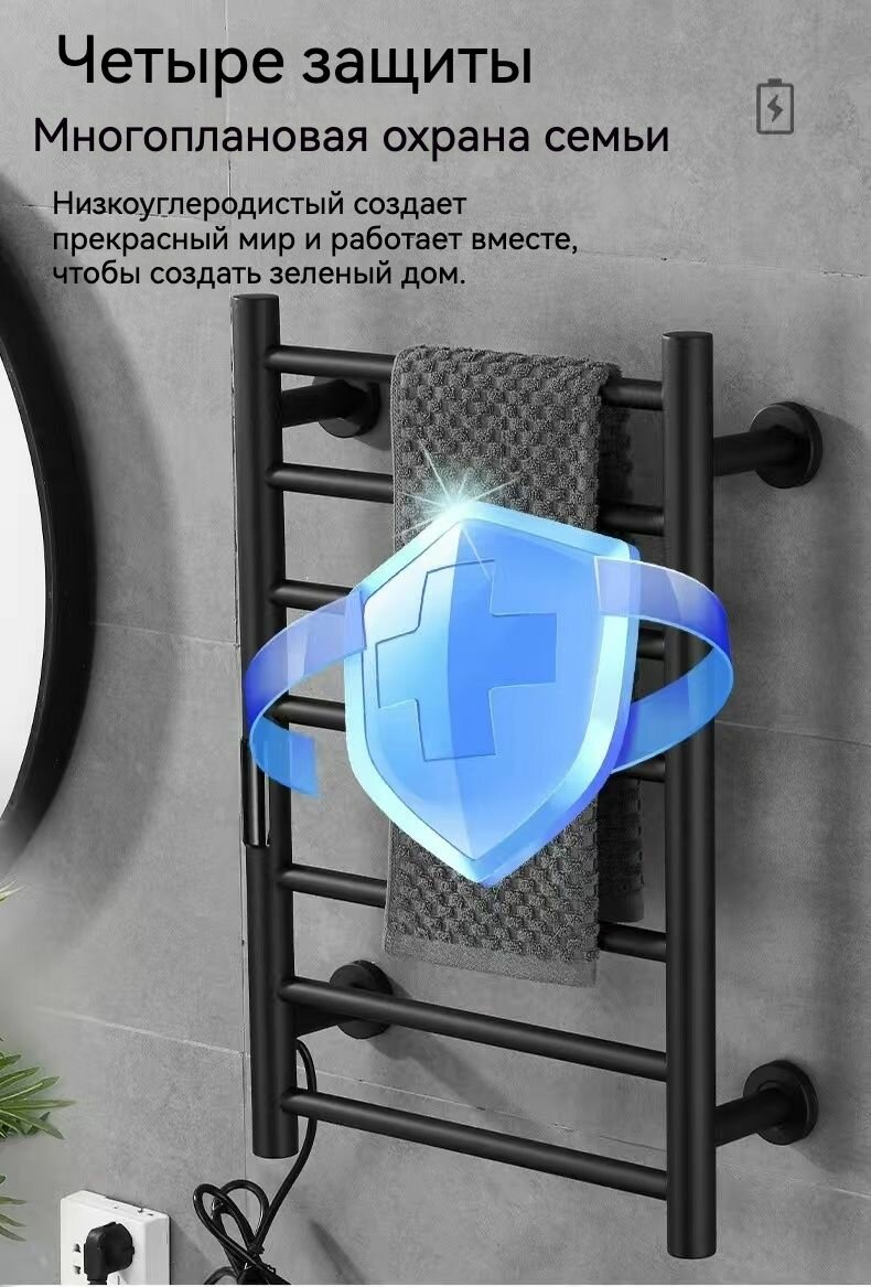 СохранитьПолотенцесушитель электрический с терморегулятором600х400x120 форма Лесенка, 6-перекладин, Правый ТЭН, скрытое подключение, черное интересное: