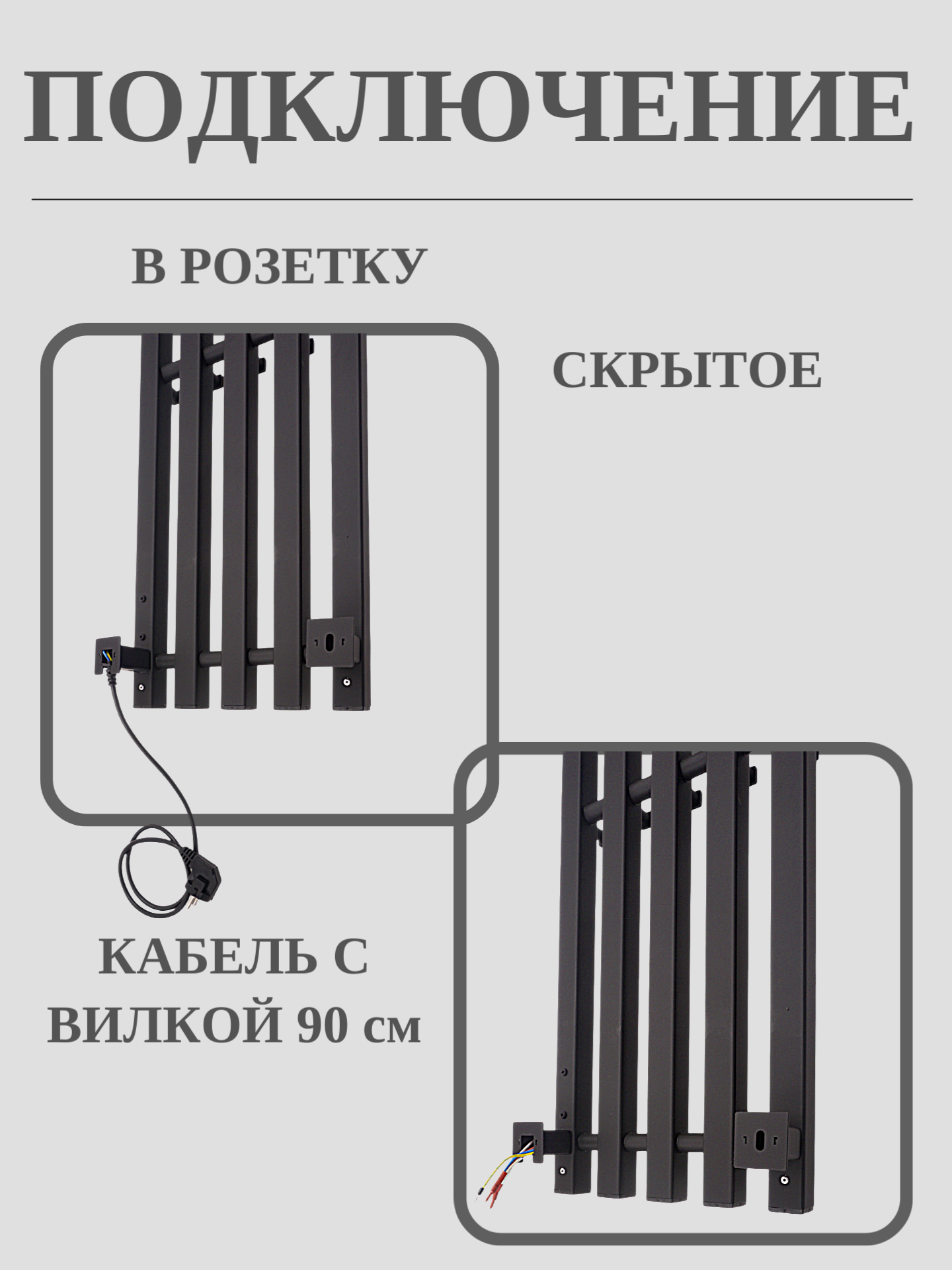 Полотенцесушитель электрический Черный матовый Маргроид Вид Inaro-5 120x24. Кабель с вилкой 90 см. интересное: