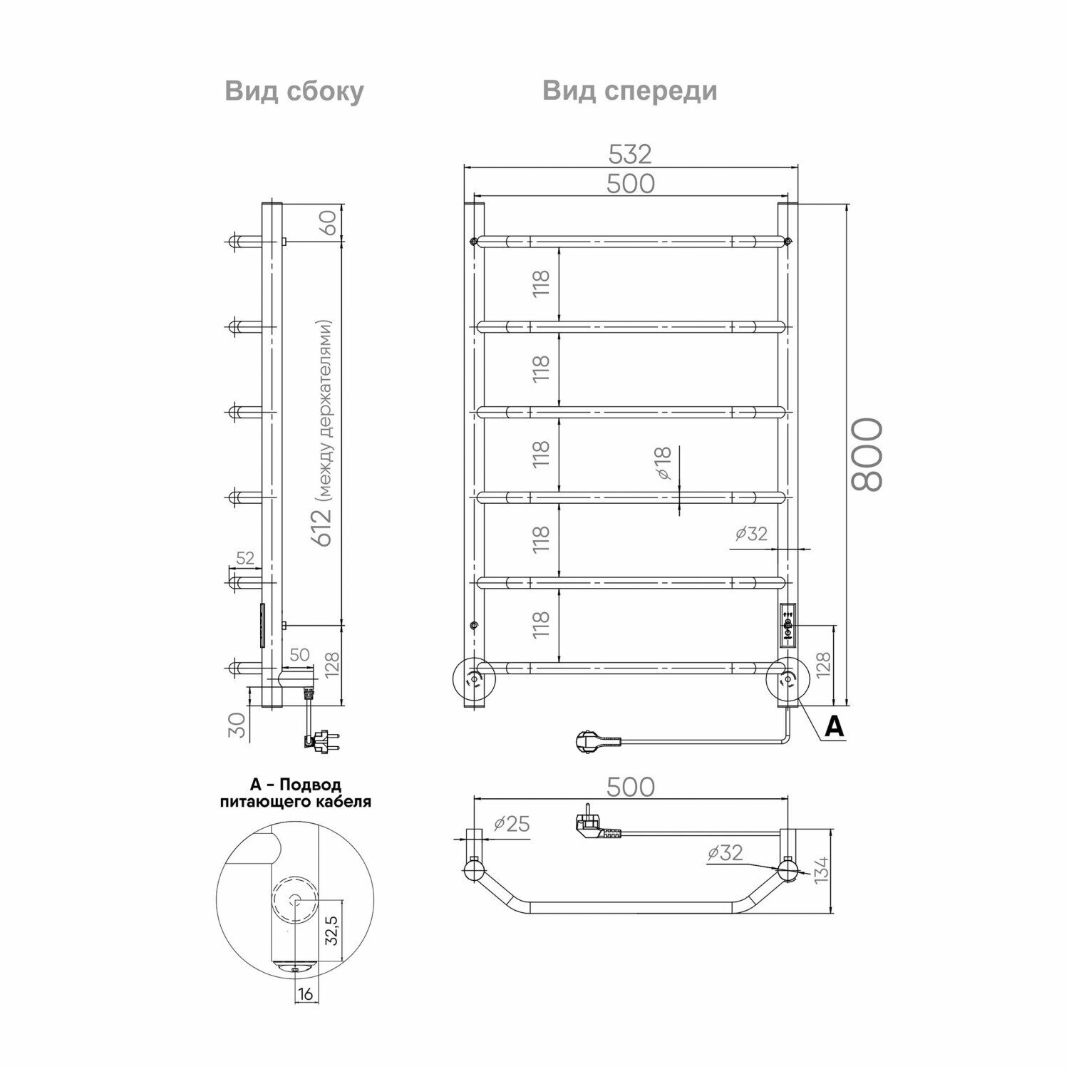 Полотенцесушитель Электрический Тругор Пэк сп 5 П 60х50 черный ВГП