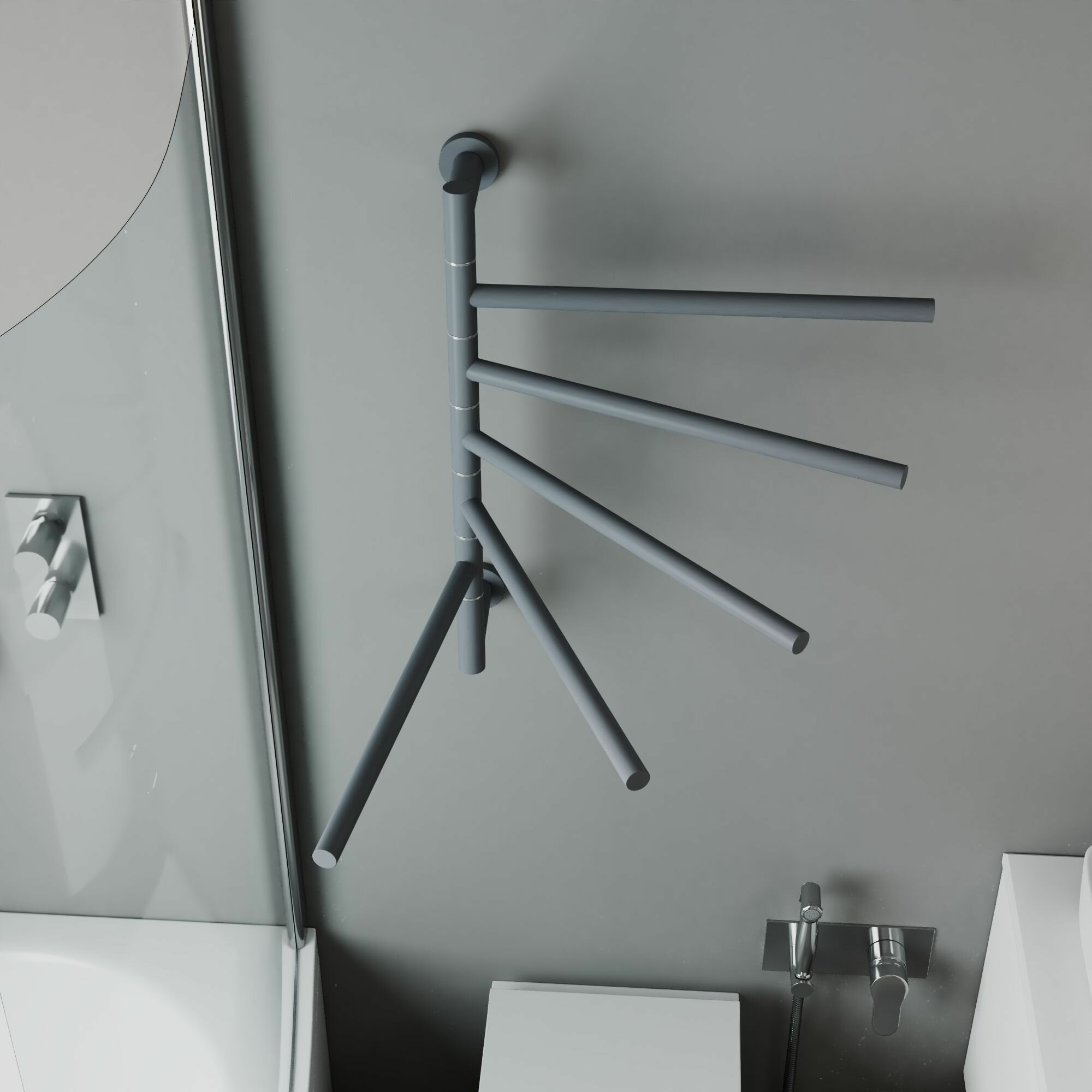 Полотенцесушитель дизайнерский электрический BAU Nimb Turning Gun Grey 60х50, подключение справа, подключение нижнее, темно-серый металлик интересное: