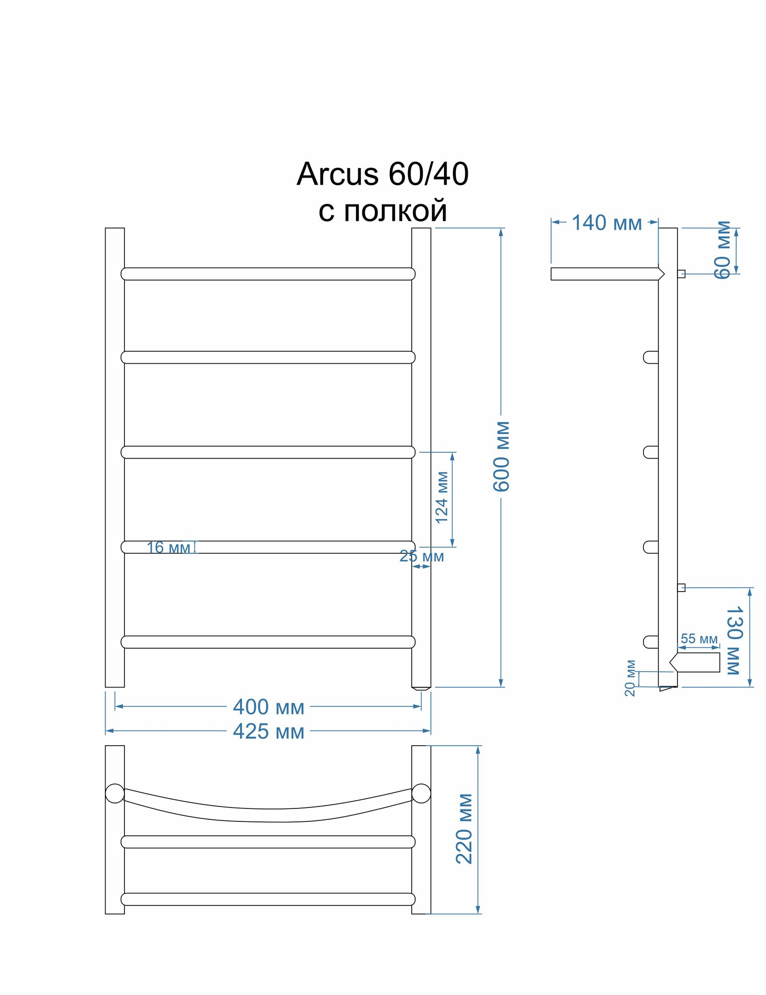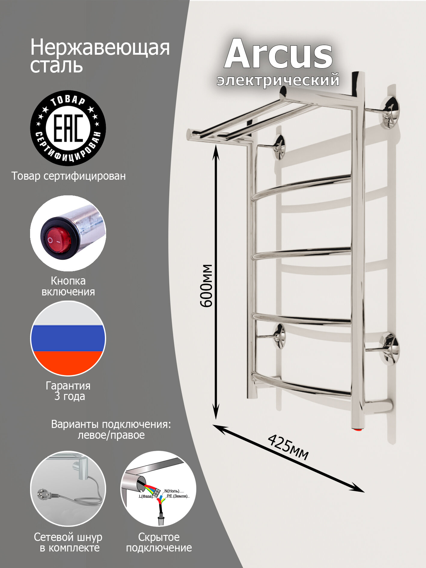 Полированный полотенцесушитель электрический arcus 60 с кнопкой и полкой интересное: