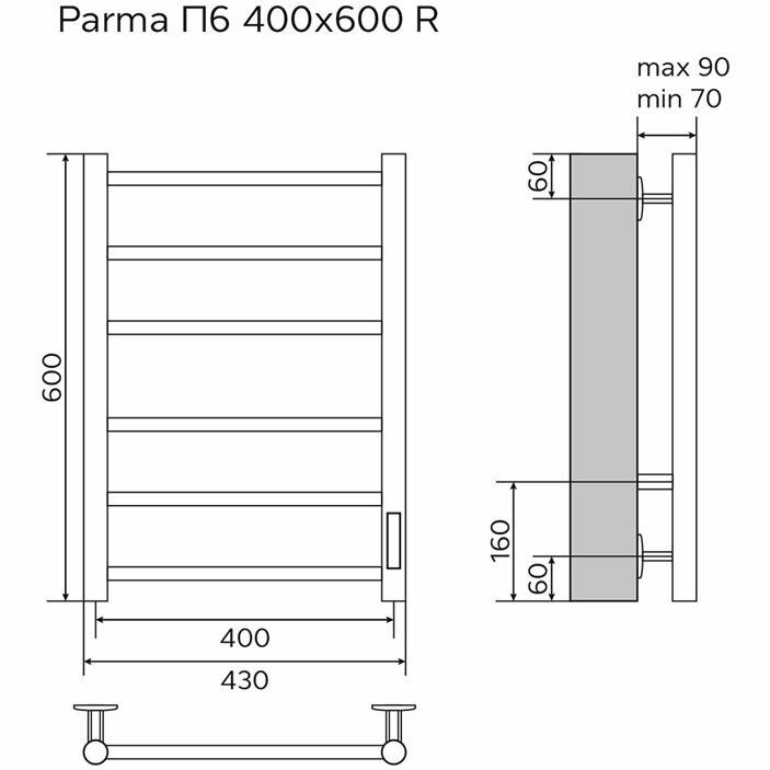 Полотенцесушитель Azario PARMA 400/600 электрический R 6 пер. AZ10846 интересное: