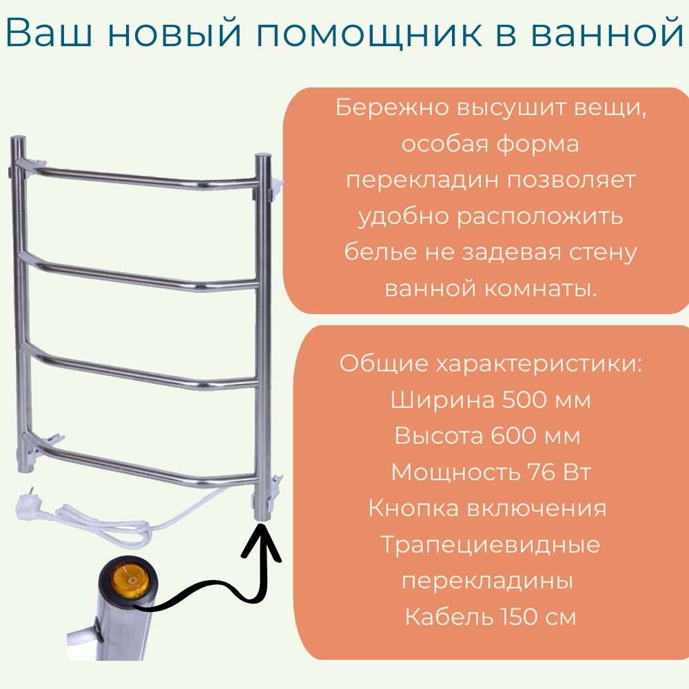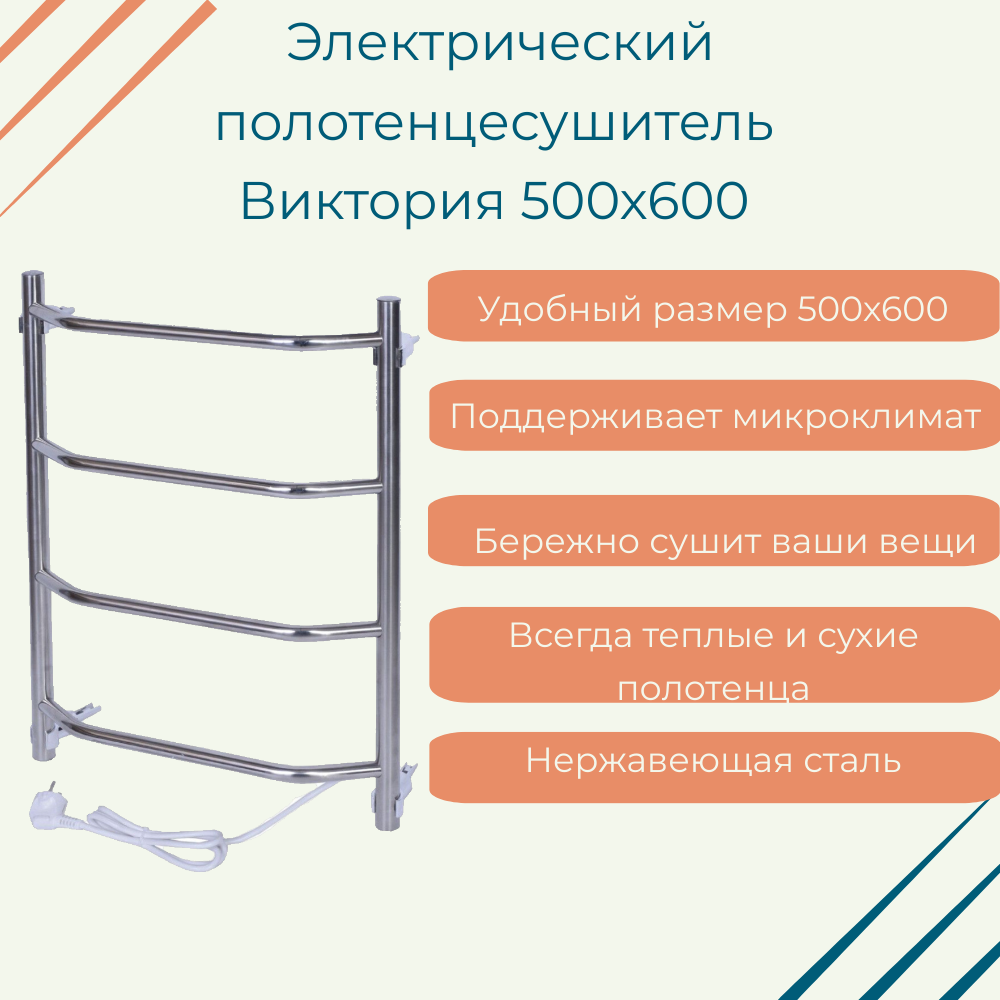 Полотенцесушитель Электрический ТЕРА Виктория 500мм 600мм форма Лесенка интересное:
