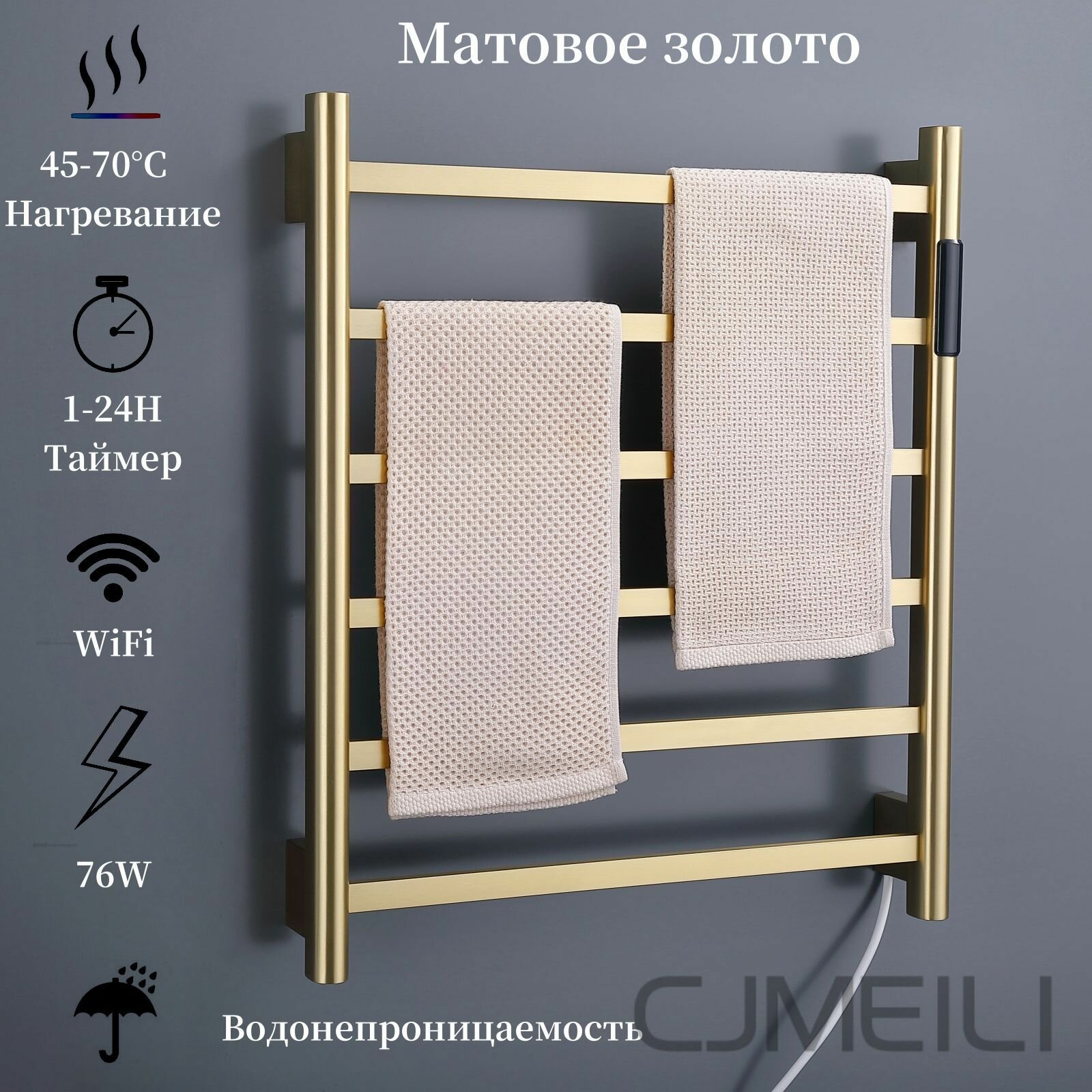 Полотенцесушитель Электрический в ванной комнате, нержавеющая сталь 6 стержней, Матовое золото интересное: