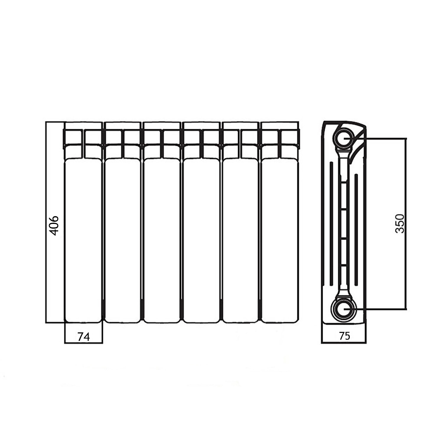 Радиатор биметаллический AZARIO BM350/80 6 секций, BM350/80/6