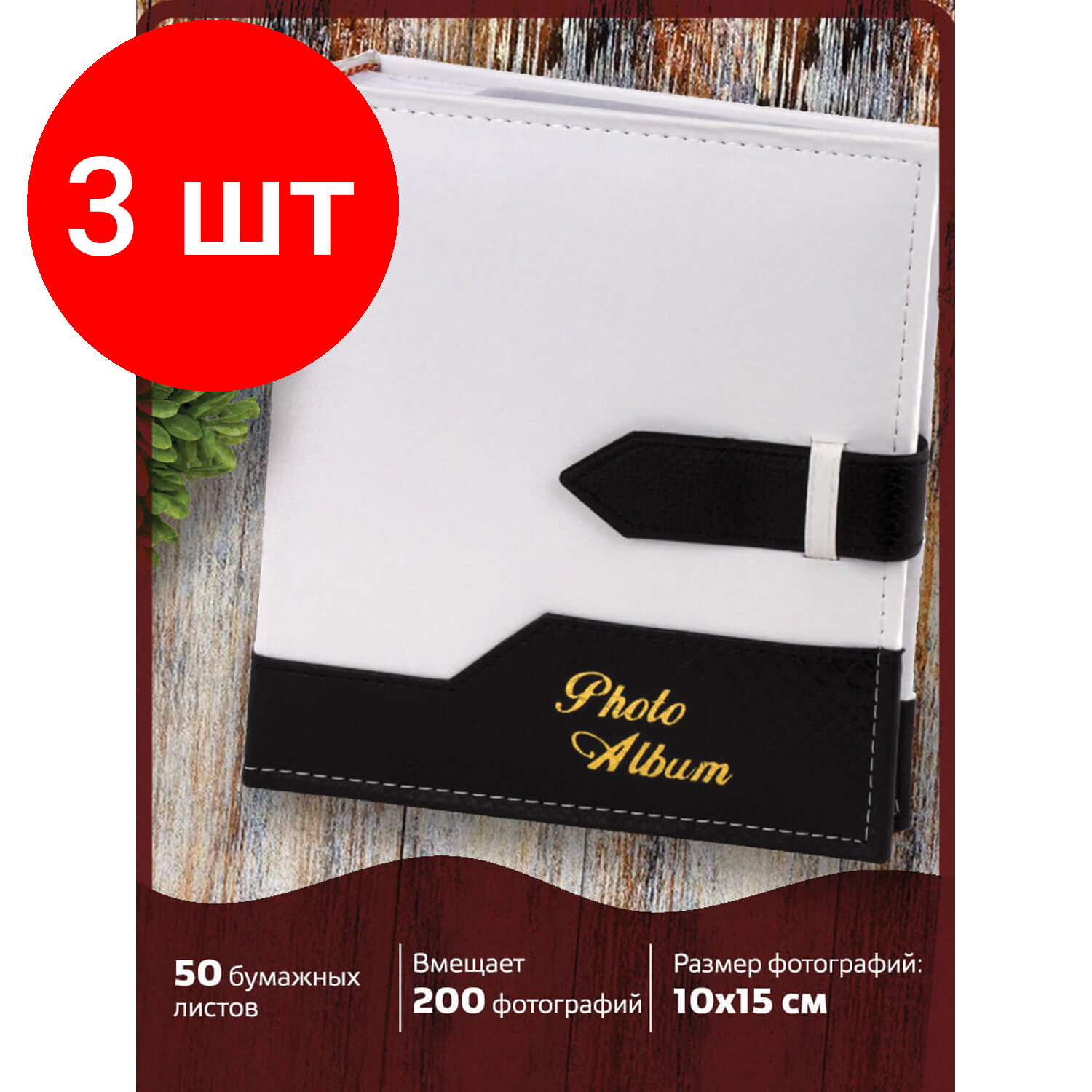 Фотоальбом BRAUBERG на 200 фото. 10х15 см, комплект 3 шт., под замшу, бумажные страницы, бокс, белый с черным, 391114