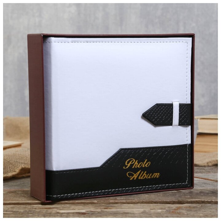 Фотоальбом BRAUBERG на 200 фото. 10х15 см, под замшу, бумажные страницы, бокс, белый с черным, 39111 И 4606224216058