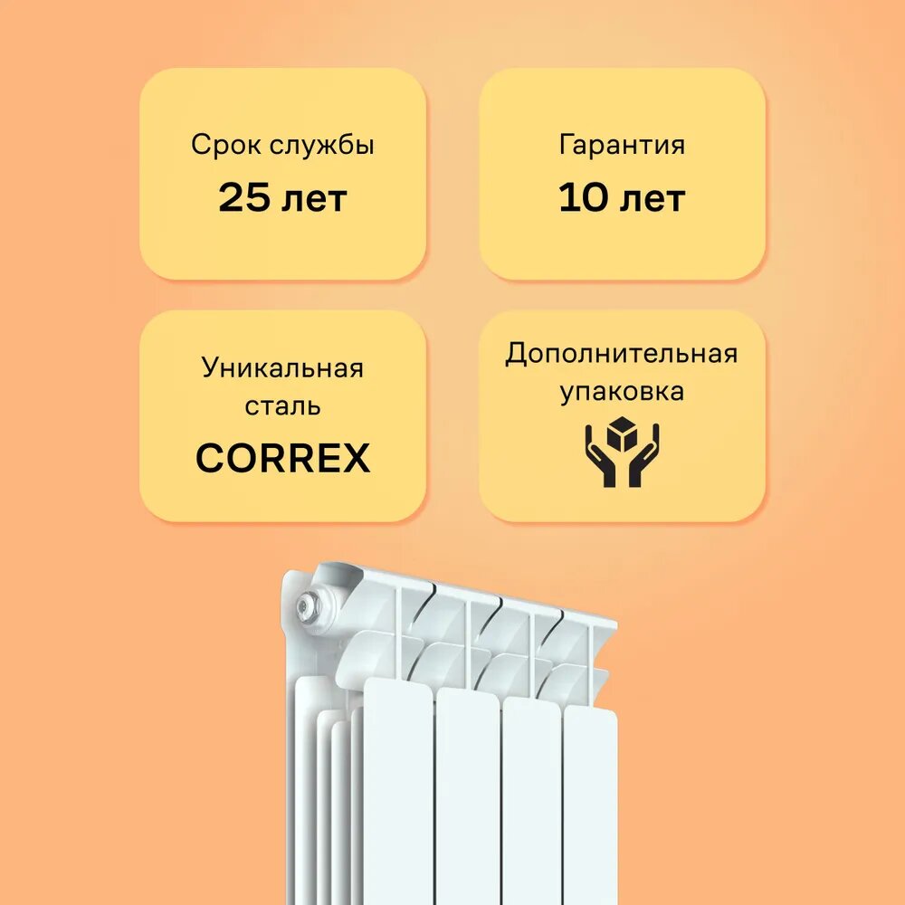 Радиатор биметаллический RIFAR Base 500 6 секций, цвет белый, подключение боковое