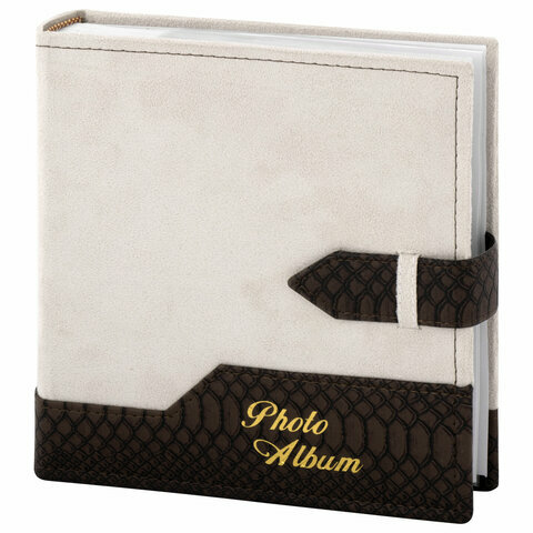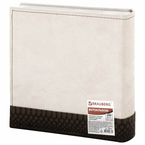 Фотоальбом BRAUBERG на 200 фотографий 10х15 см, под замшу, бумажные страницы, бокс, беж с коричневым, 390679, 390679