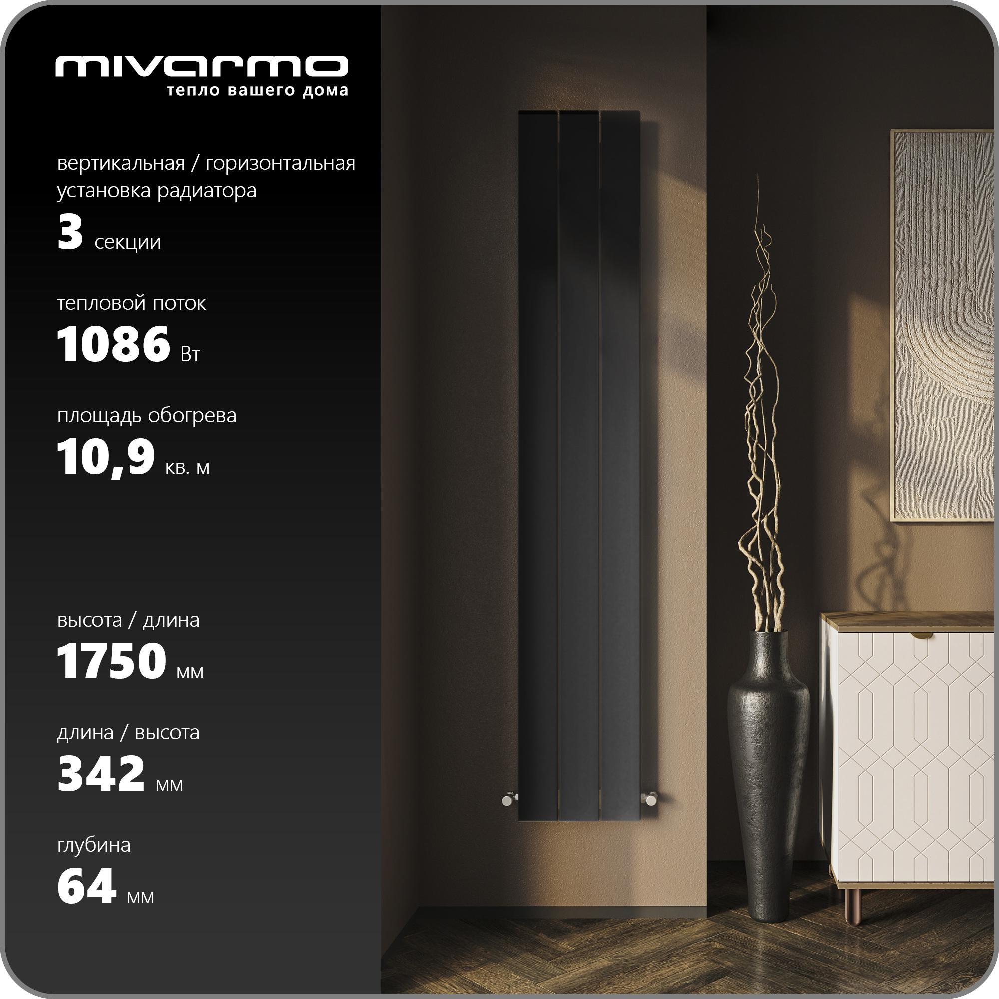 Купить Секционный радиатор отопления Mivarmo 3 секции, горизонтальное/вертикальное подключение 175 см (черный муар)