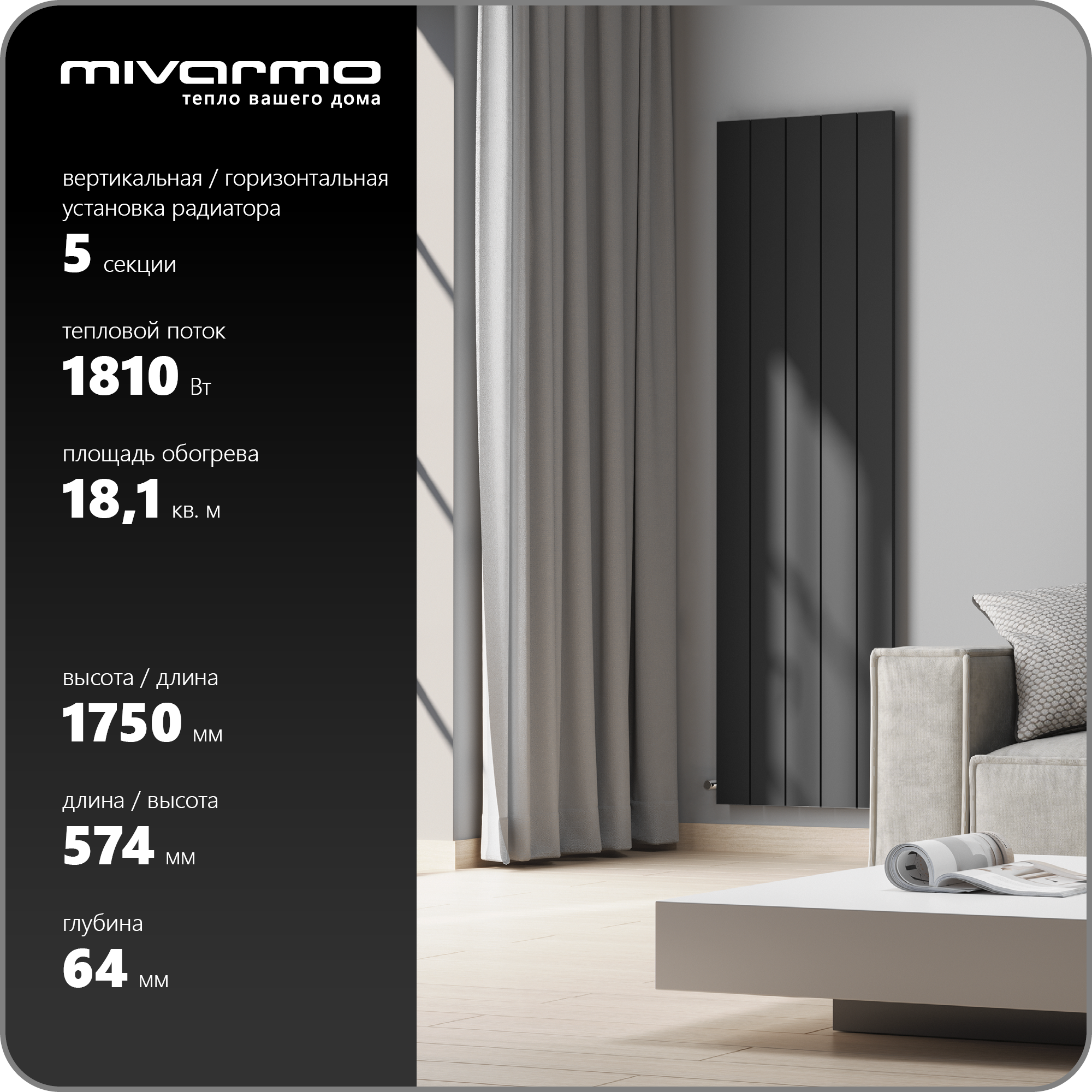 Купить Секционный радиатор отопления Mivarmo 5 секций, горизонтальное/вертикальное подключение 175 см (черный муар)