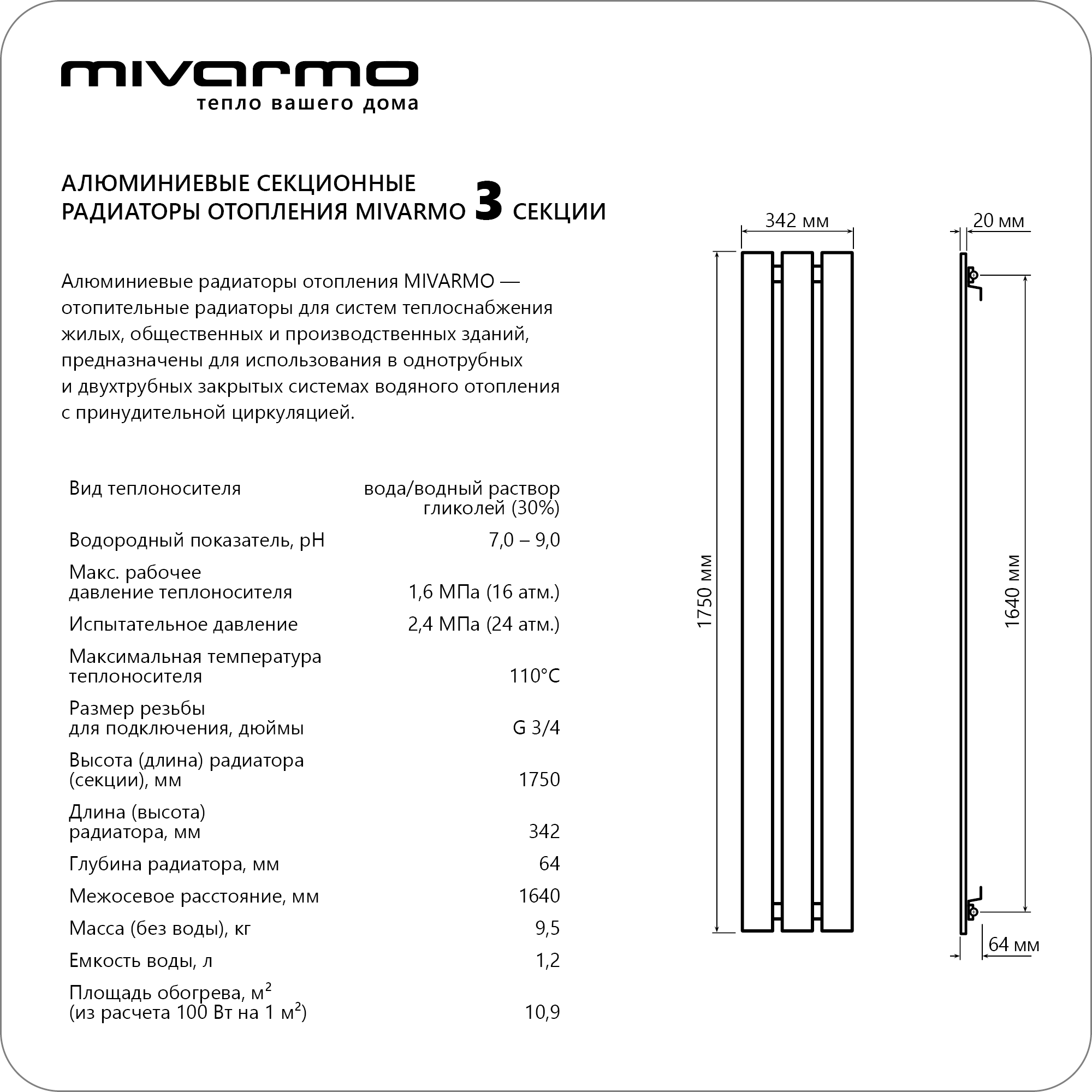 СохранитьСекционный радиатор отопления Mivarmo 3 секции, горизонтальное/вертикальное подключение 175 см (белый матовый) интересное:
