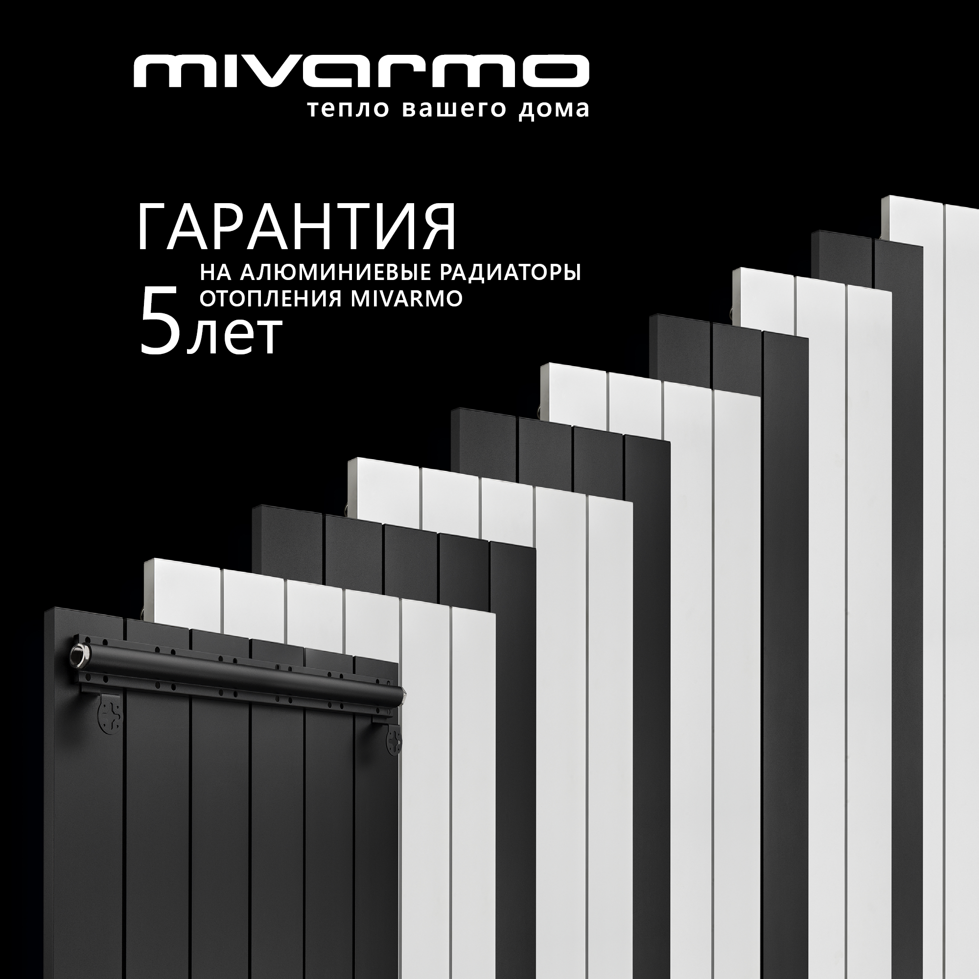 Секционный радиатор отопления Mivarmo 5 секций, горизонтальное/вертикальное подключение 150 см (черный муар)