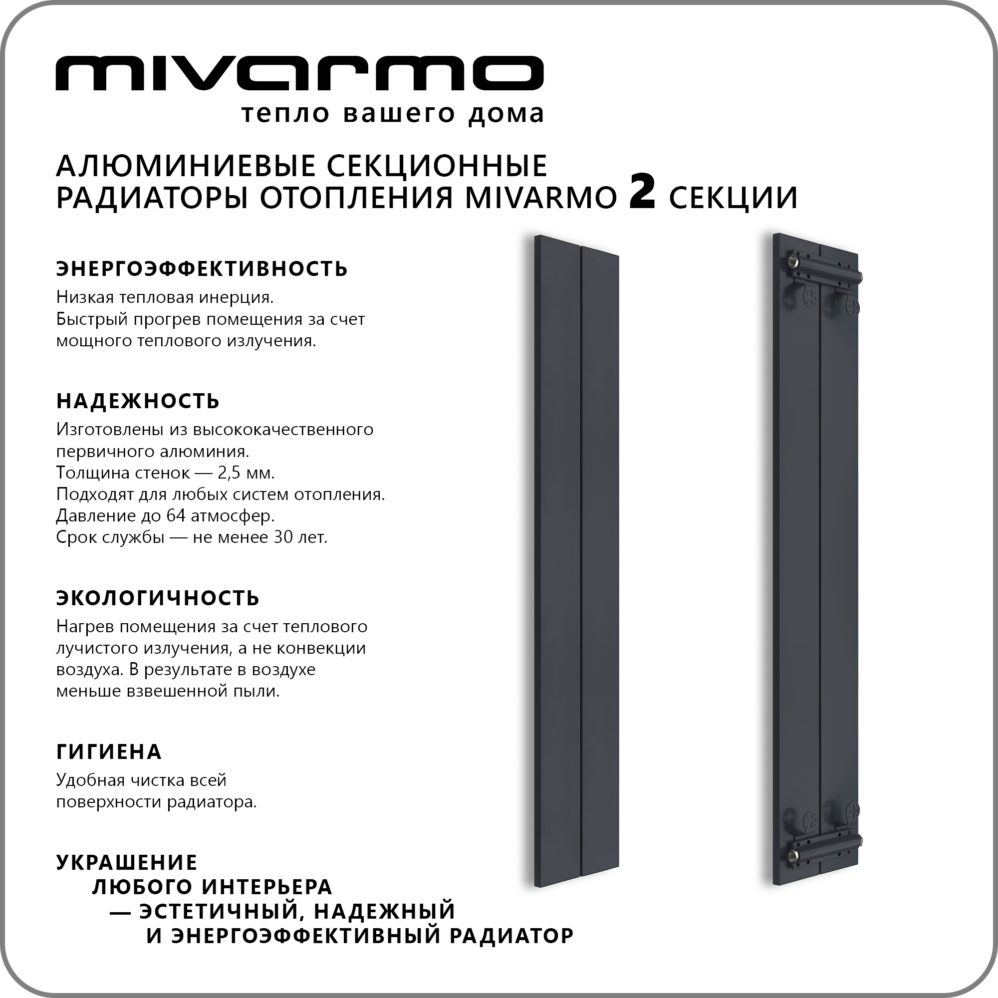 Секционный радиатор отопления Mivarmo 2 секции, горизонтальное/вертикальное подключение 175 см (черный муар)