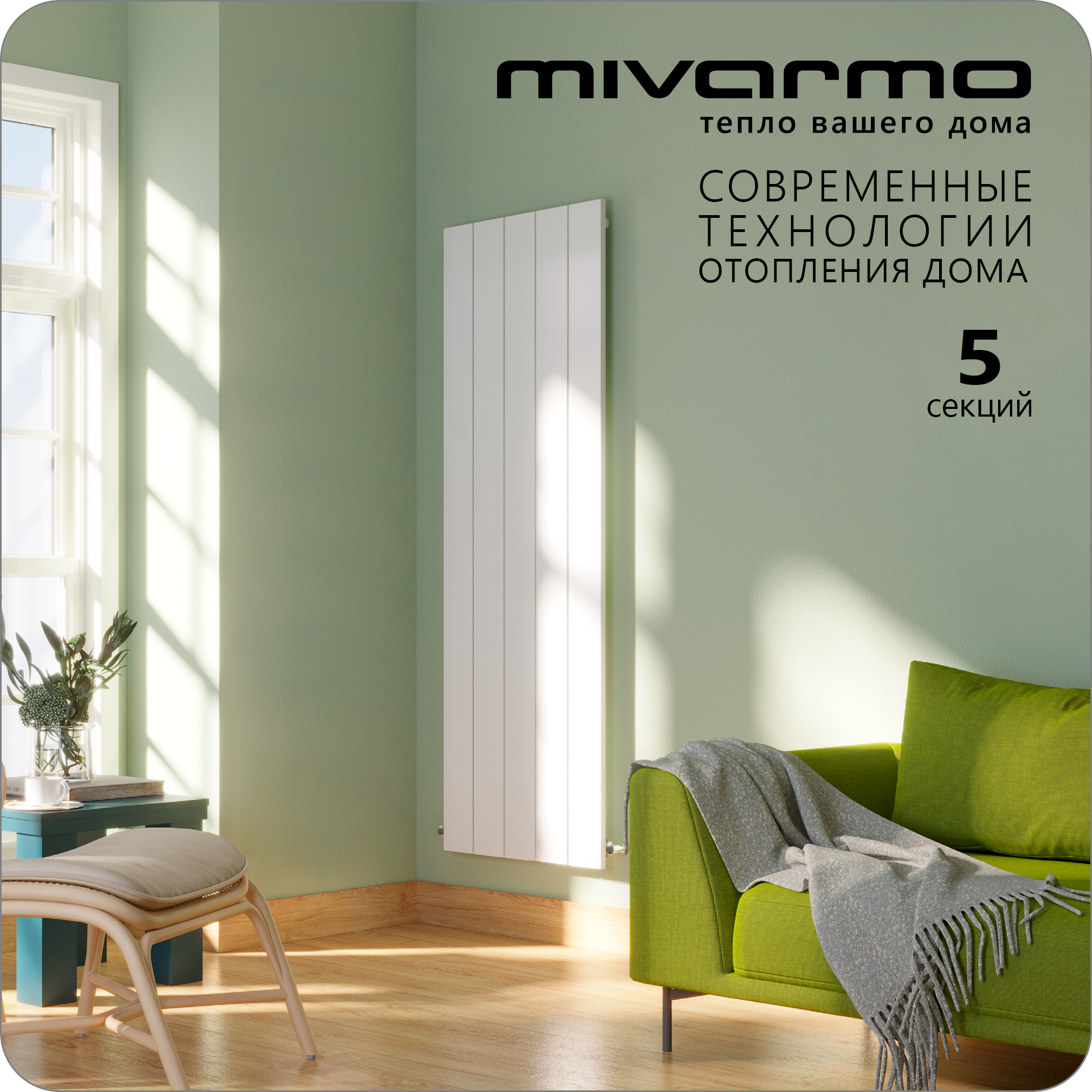 Секционный радиатор отопления Mivarmo 5 секций, горизонтальное/вертикальное подключение 150 см (белый матовый)