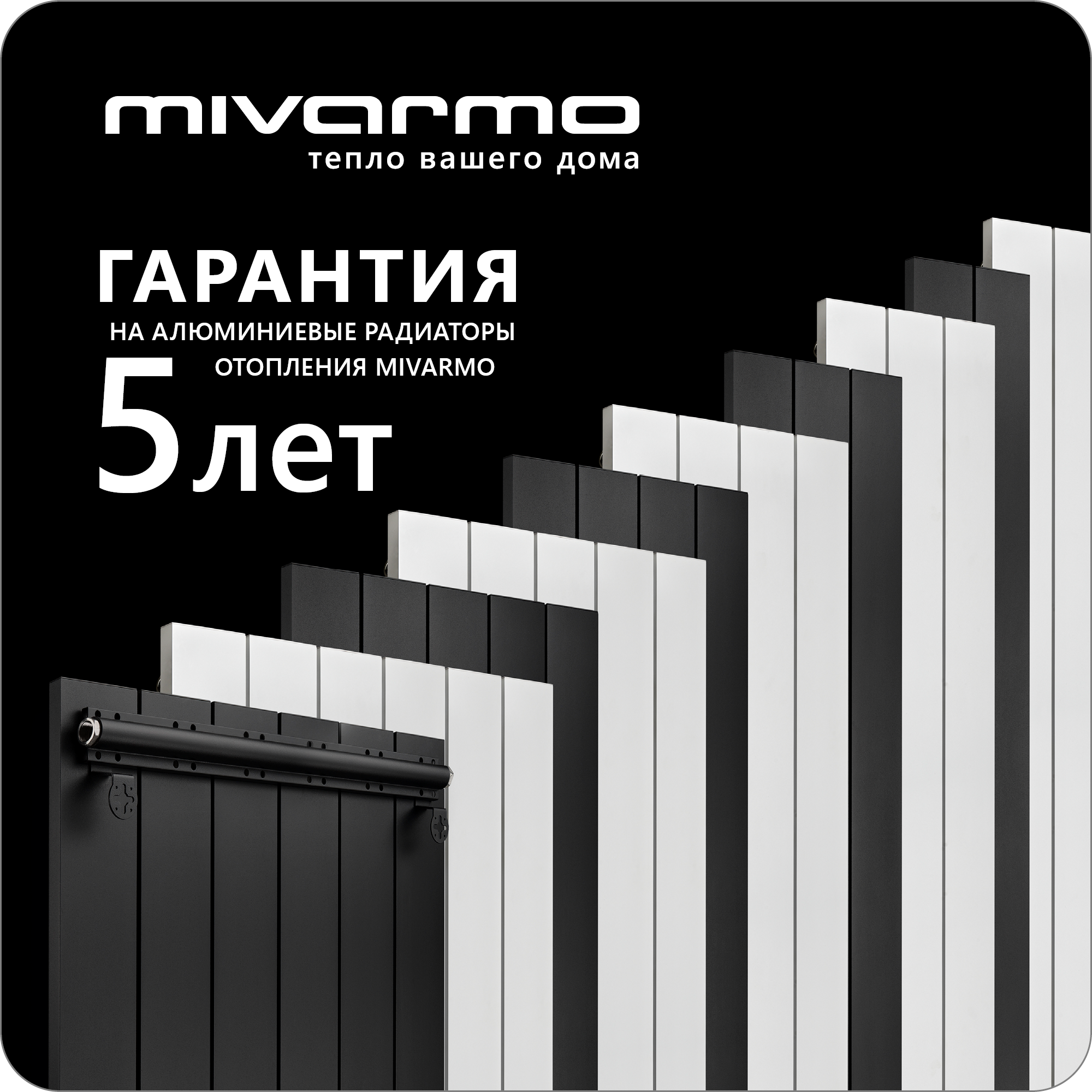 Секционный радиатор отопления Mivarmo 5 секций, горизонтальное/вертикальное подключение 175 см (белый матовый)