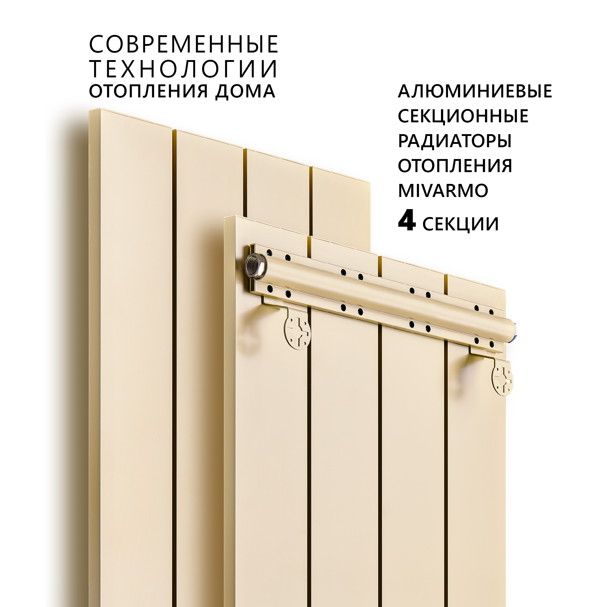 СохранитьСекционный радиатор отопления Mivarmo 4 секции, горизонтальное/вертикальное подключение 150 см (жемчужно-белый) интересное: