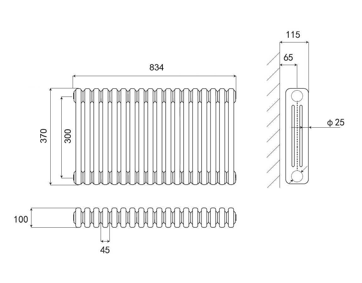 Стальной трубчатый радиатор Kohr Heim 3037/26 секций с боковым подключением 3/4