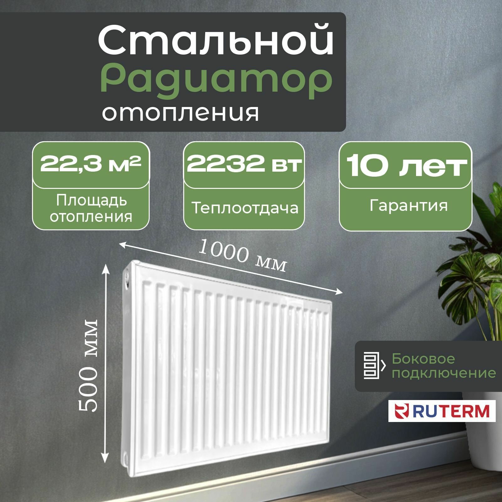 Купить Радиатор отопления стальной панельный 22 500 1000, боковое, RUTERM