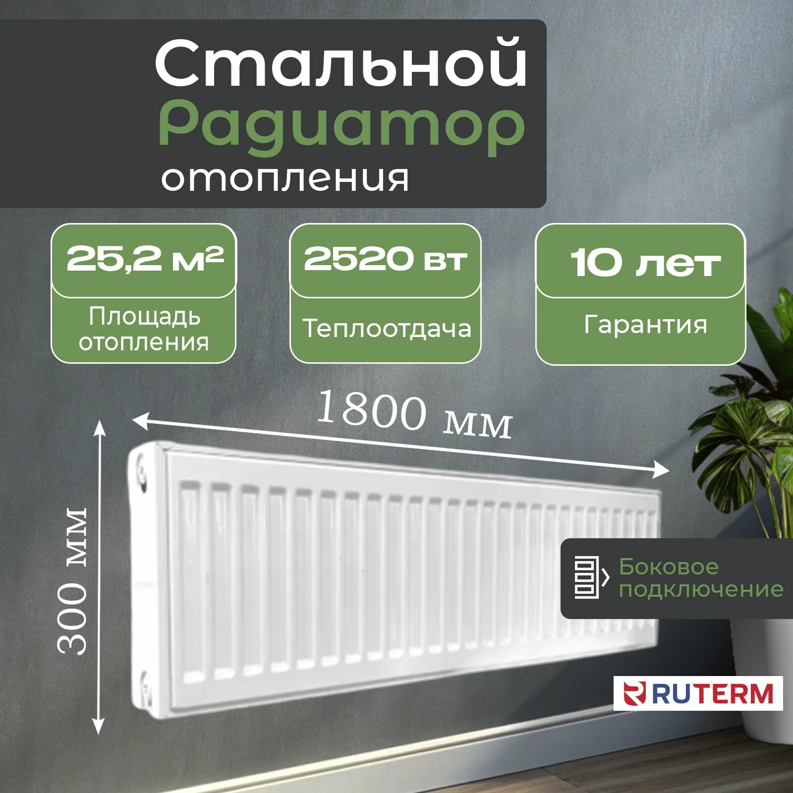 Купить Стальной панельный радиатор 22/300/1800, RUTERM, боковое подключение 1,2