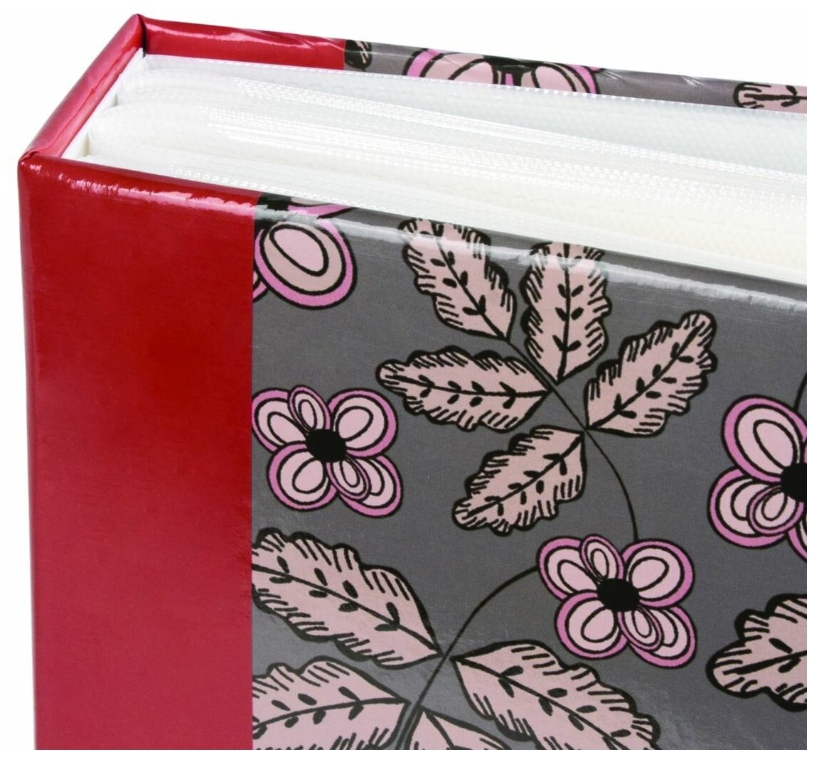 Фотоальбом семейный/свадебный/детский на 200 фотографий 10x15см "Флора", твердая обложка, листы с карманами, серый с красным, Brauberg