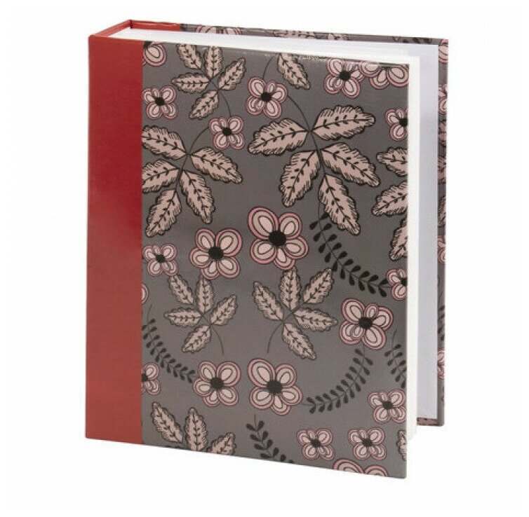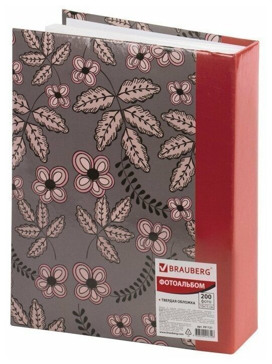 Фотоальбом Brauberg на 200 фото 10х15 см, твердая обложка, "Флора", серый с красным (391121)
