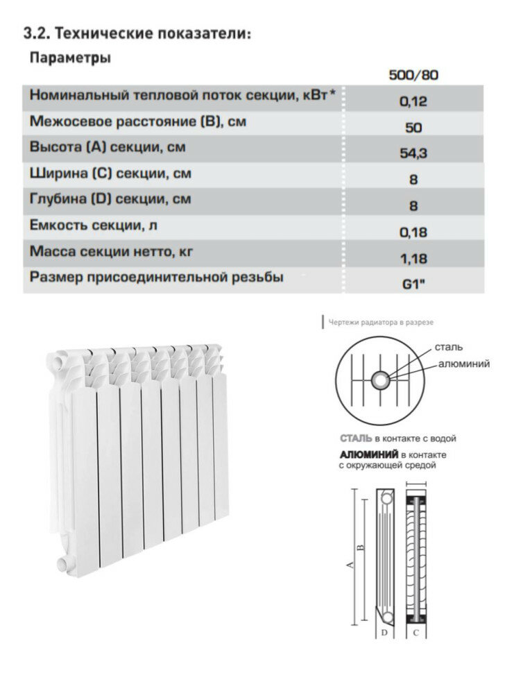 Радиатор биметаллический ALECORD 500/80/8 (1.03 кВт) интересное: