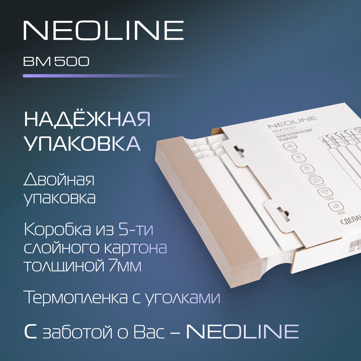 Радиатор биметаллический NEOLINE, BM 500, 8 секций, теплоотдача 1376Вт