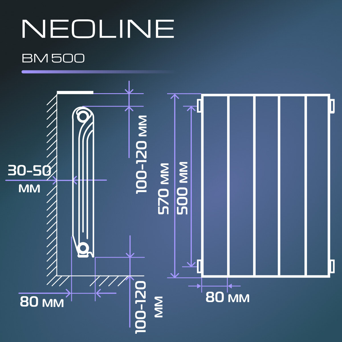 Радиатор биметаллический NEOLINE BM 500, настенный, боковое подключение, 4 секции, белый интересное: