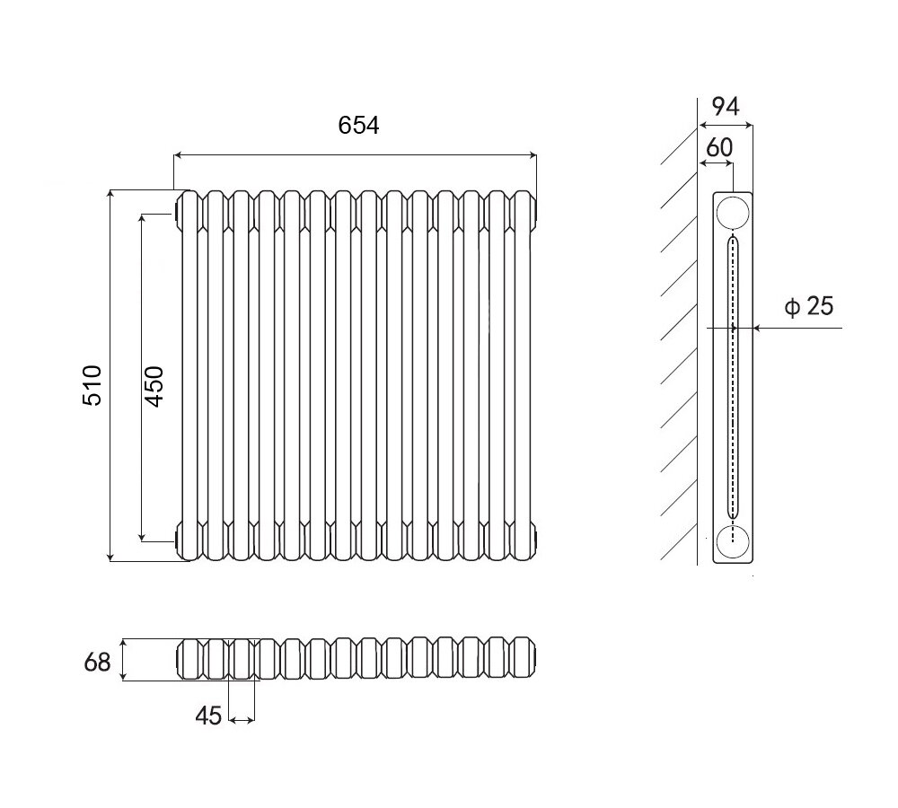 Стальной трубчатый радиатор Kohr Heim 2055/18 секций с боковым подключением 3/4