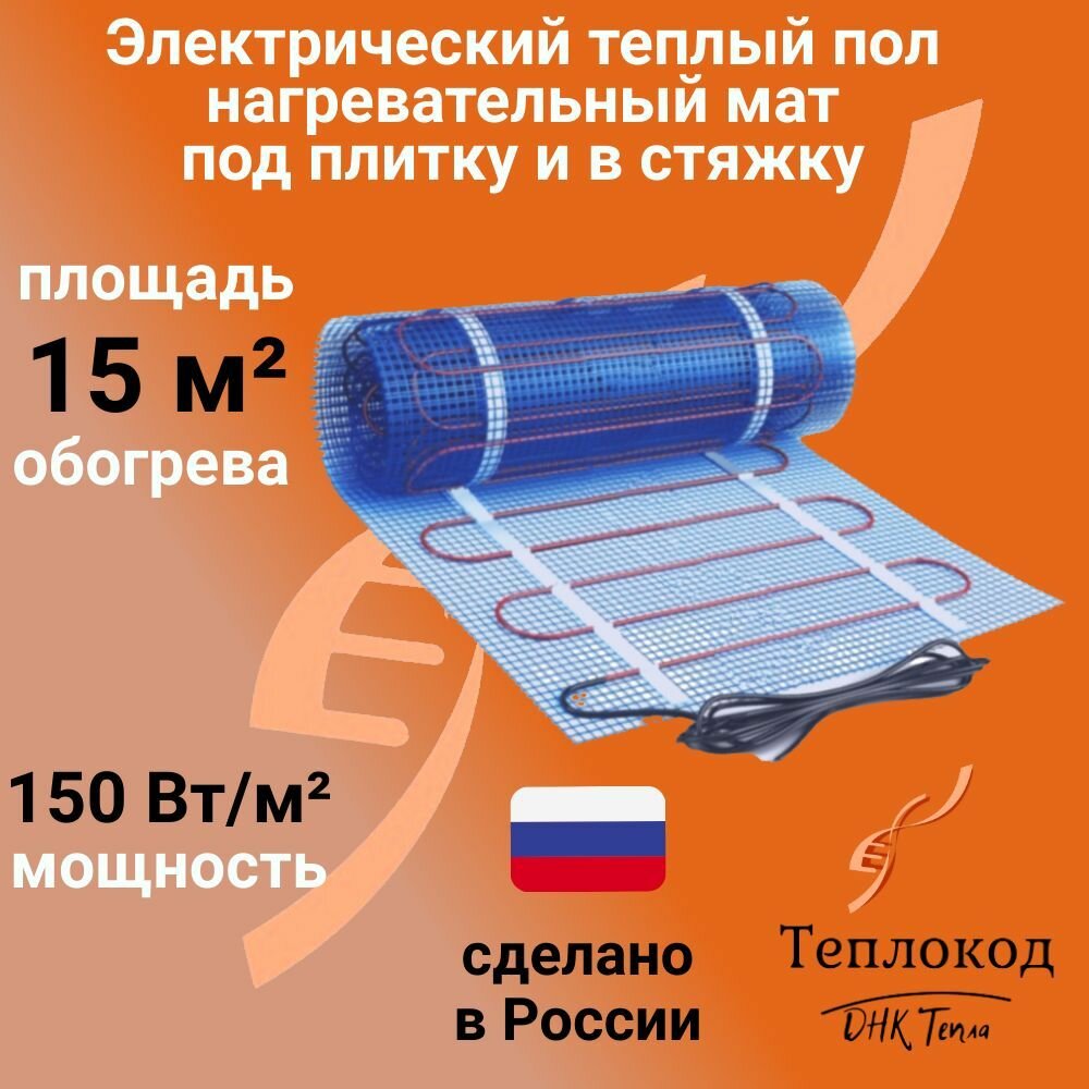 Теплый пол электрический 150 Вт/м2 под плитку и в стяжку (нагревательный мат) 15 м2 с механическим терморегулятором