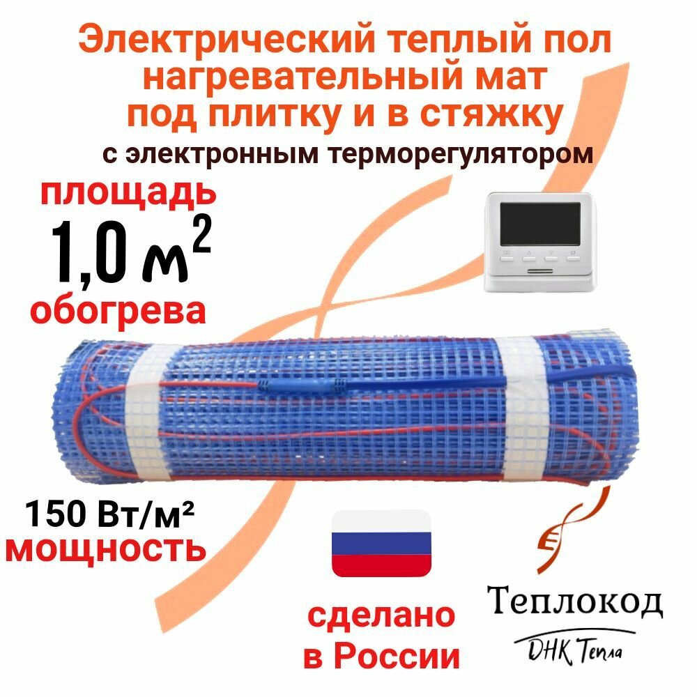 Теплый пол электрический 150 Вт/м2 под плитку и в стяжку (нагревательный мат) 1 м2 с электронным WI-FI терморегулятором