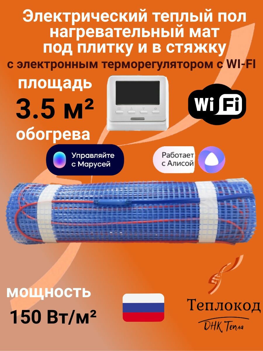 Купить Теплый пол электрический 150 Вт/м2 под плитку и в стяжку (нагревательный мат) 3.5 м2 с электронным WI-FI терморегулятором