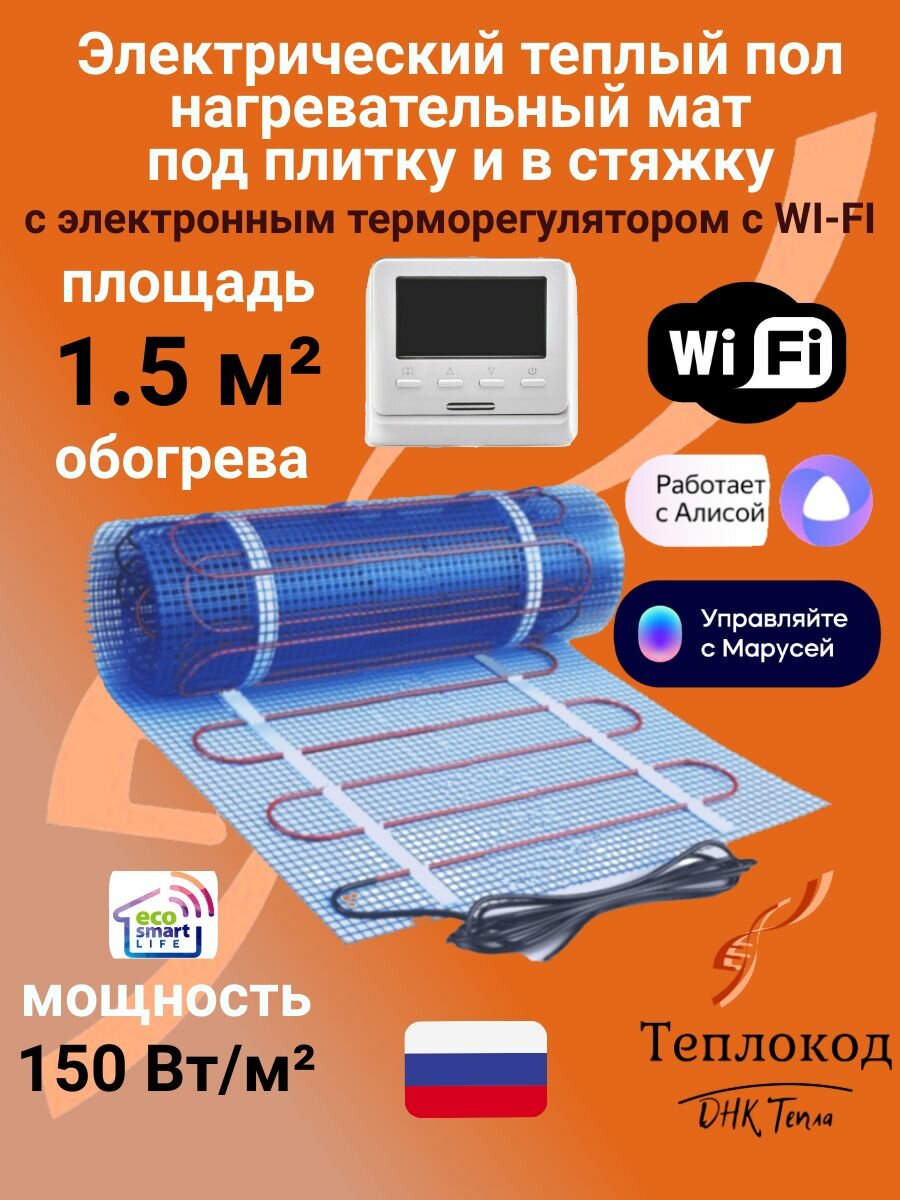Купить Теплый пол электрический 150 Вт/м2 под плитку и в стяжку (нагревательный мат) 1.5 м2 с электронным WI-FI терморегулятором