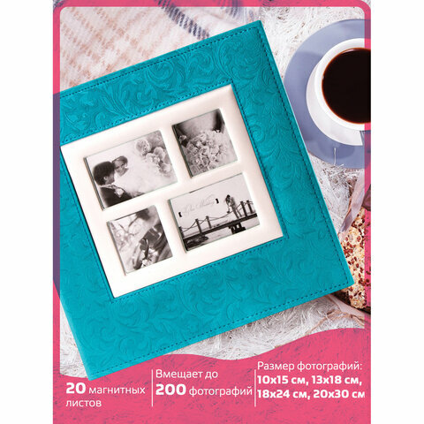 Фотоальбом BRAUBERG свадебный, 20 магнитных листов 30х32 см, под фактурную кожу, синий, 391128, 391128