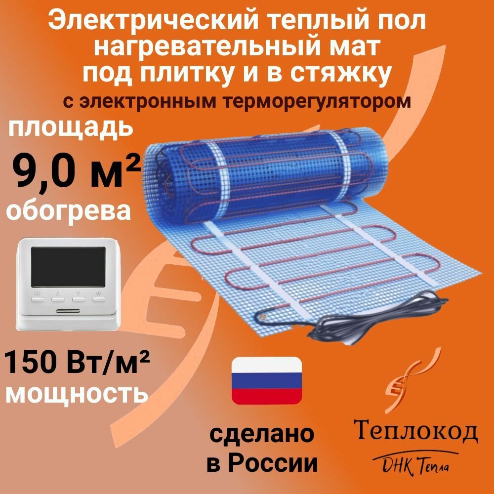Теплый пол электрический 150 Вт/м2 под плитку и в стяжку (нагревательный мат) 9 м2 с электронным WI-FI терморегулятором