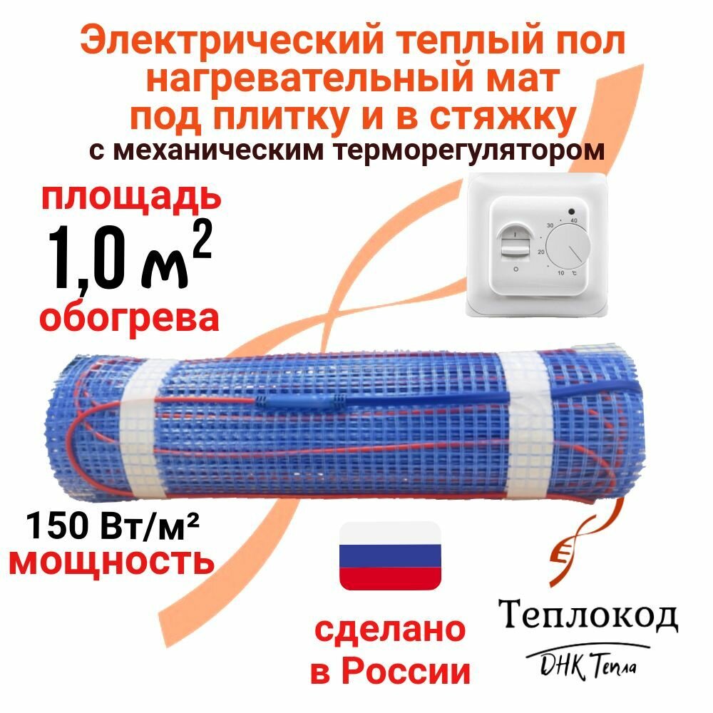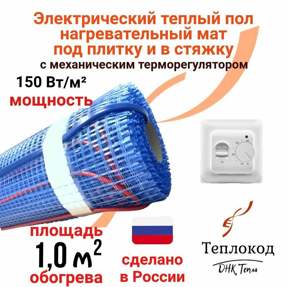 Купить Теплый пол электрический 150 Вт/м2 под плитку и в стяжку (нагревательный мат) 1 м2 с механическим терморегулятором