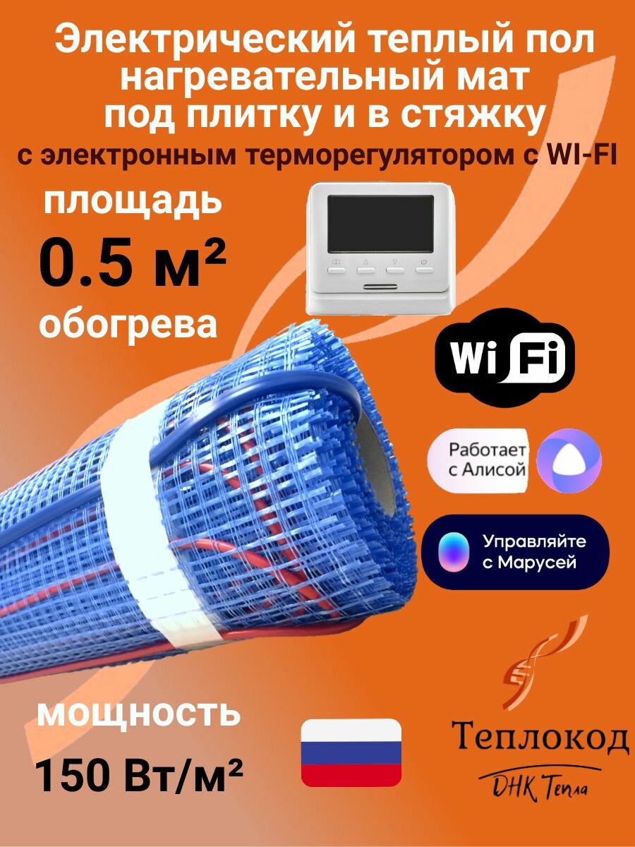 Купить Теплый пол электрический 150 Вт/м2 под плитку и в стяжку (нагревательный мат) 0.5 м2 с электронным WI-FI терморегулятором
