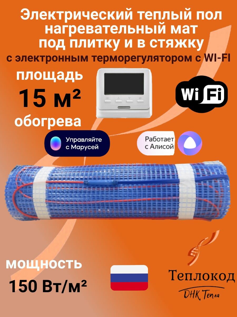 Купить Теплый пол электрический 150 Вт/м2 под плитку и в стяжку (нагревательный мат) 15 м2 с электронным WI-FI терморегулятором