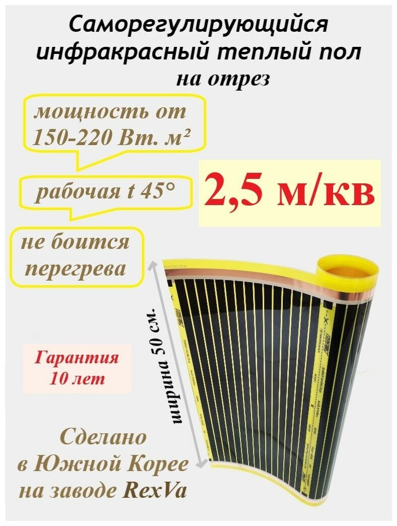 Плёночный тёплый пол электрический саморегулирующийся Varmel Saving 150-220 Вт. м2/ширина 50 см/длина 3 м. п./225-330 Вт/1,5 м2